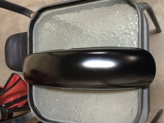 Once in the frame I realized, “hey, this looks pretty good “ but something still didn’t look right. After standing back and looking at it for a couple of beers, the decision was made to black out the chrome. The fenders and taillight were removed, scuff sanded with 180 grit sandpaper and given a couple coats of Duplicolor self etching primer then finished with VHT matte black roll bar and chassis paint.
