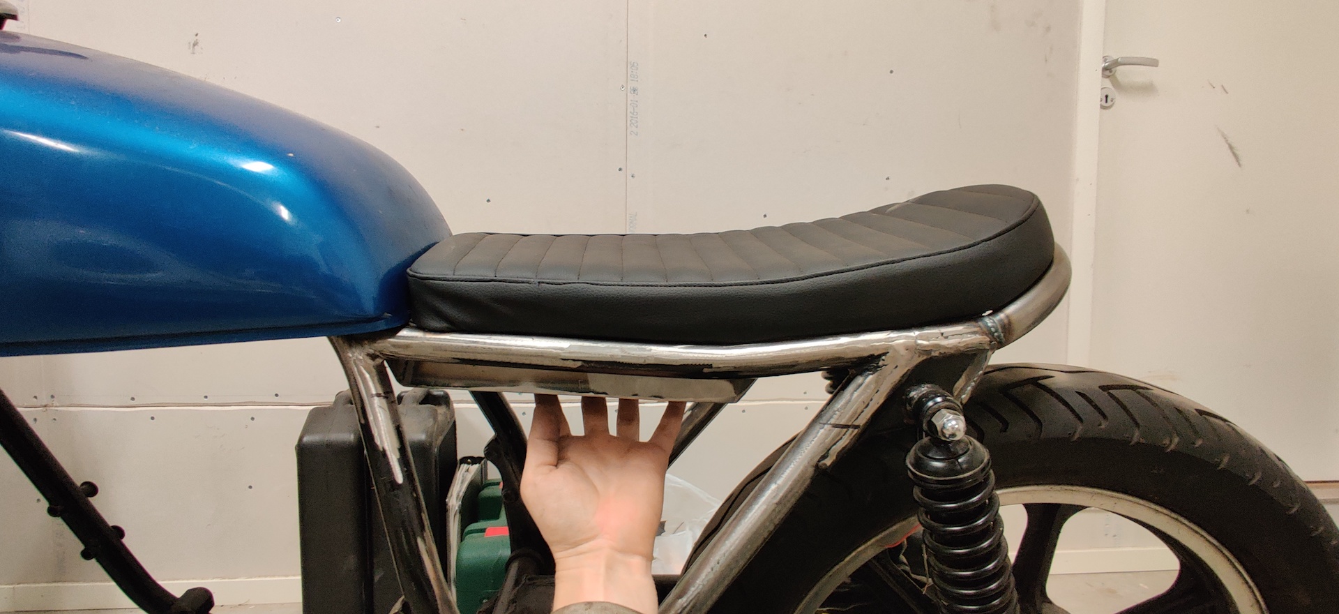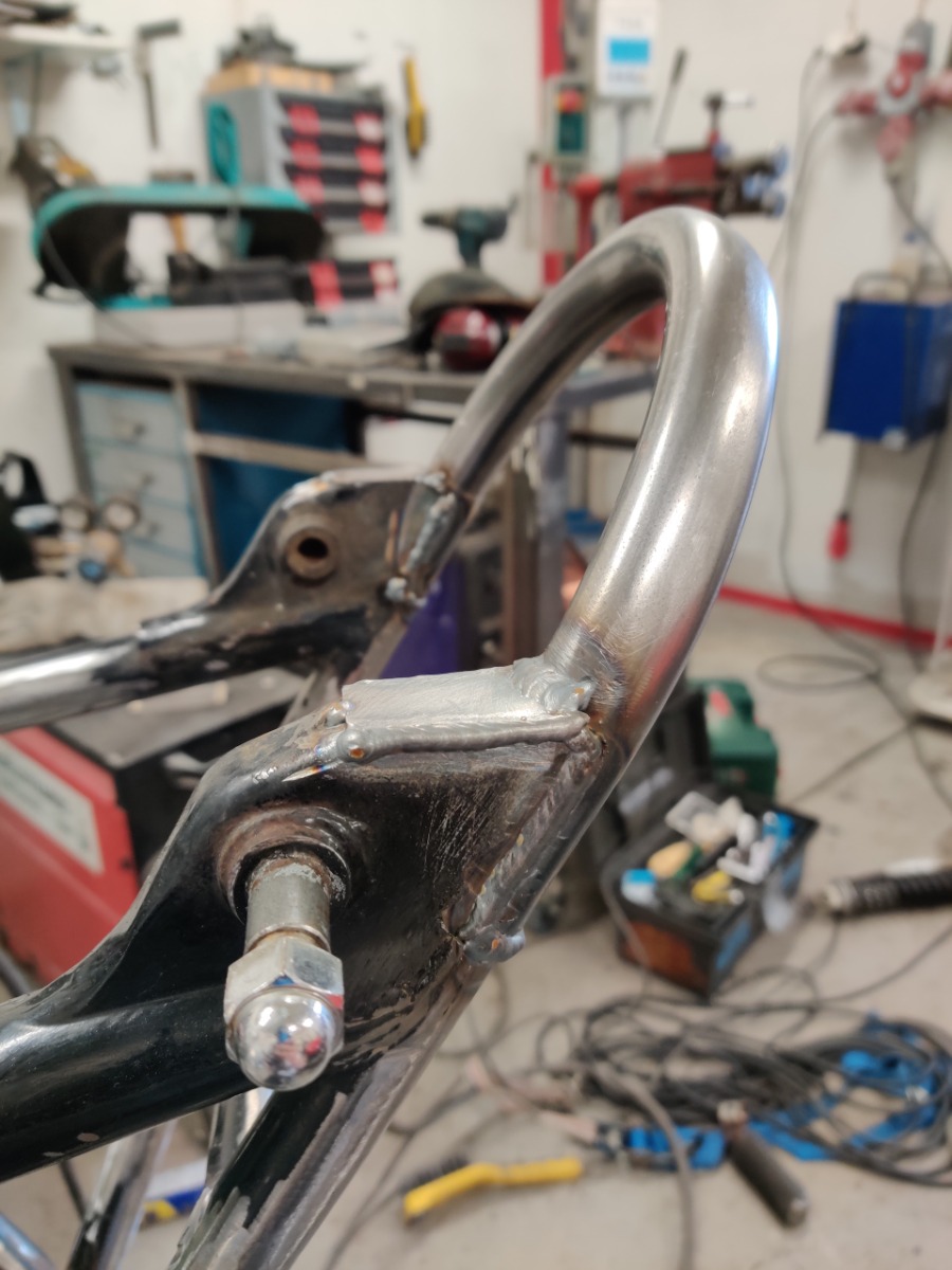 2019 - Moved in to a new garage spot and slapped the frame together and started welding up a new loop in the back, made a seat pan and cleaned up the frame as good as i could.