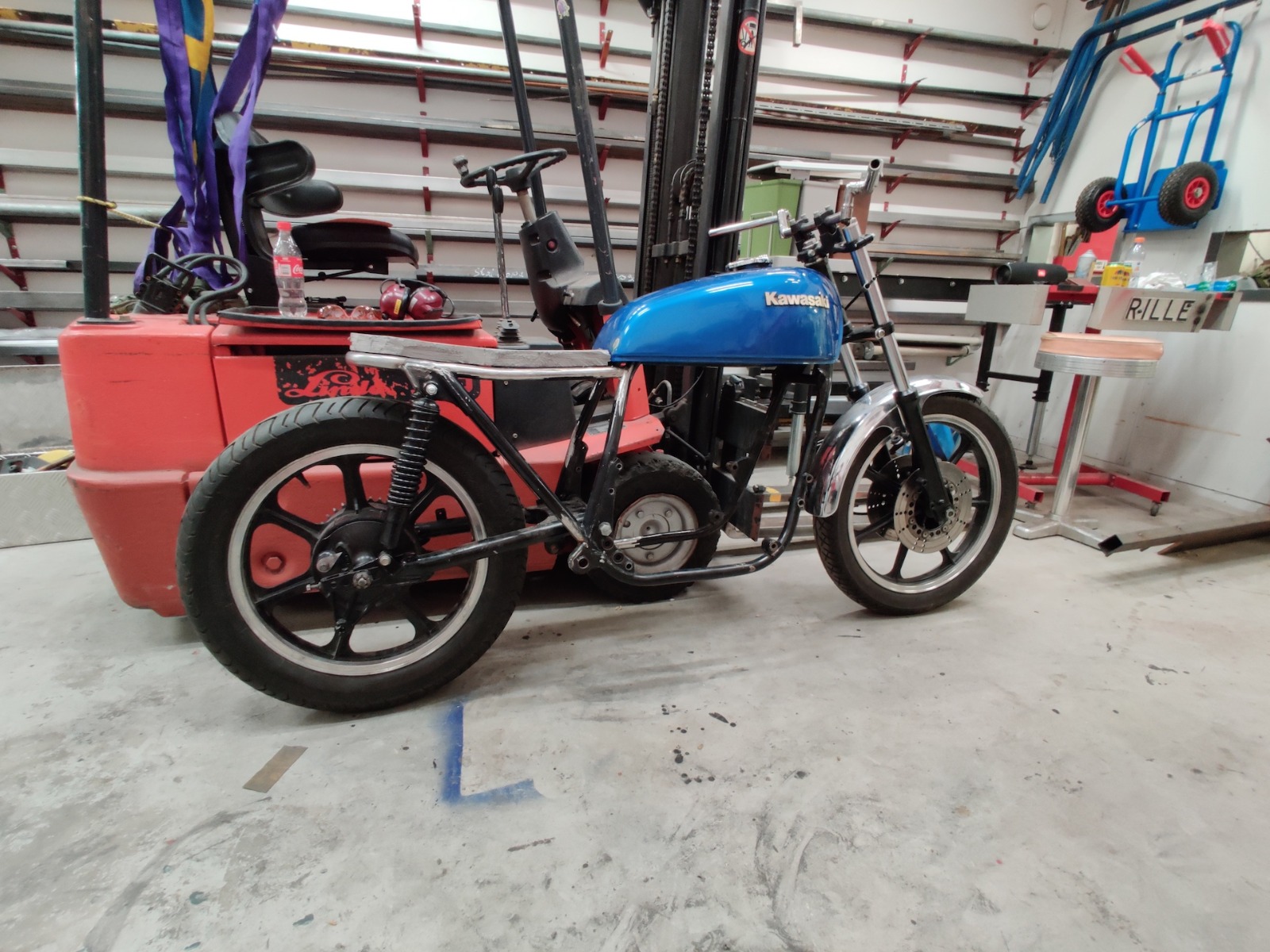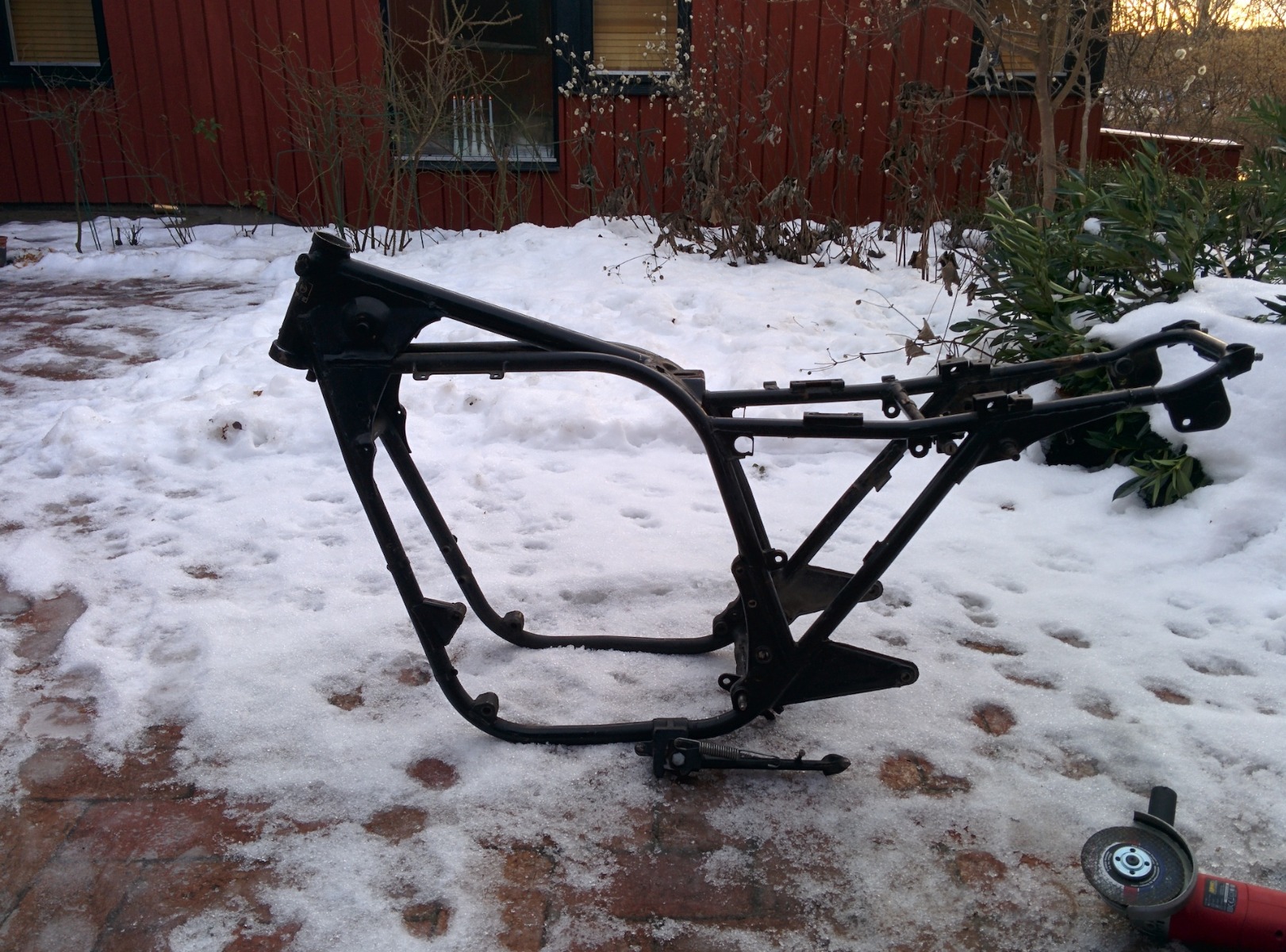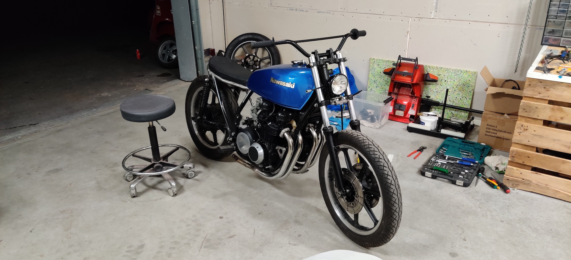 Since I started the goal has been to have same size wheels to get that nice symmetric look. This has become something of a must have for me and since the project have been on and off for so long I feel no stress getting it on the road, instead I feel good about things taking time. I now have a permanent shop space and even tough I have owned 5 bikes in three different countries I don't have a licence for Sweden yet so no stress getting it on the road.