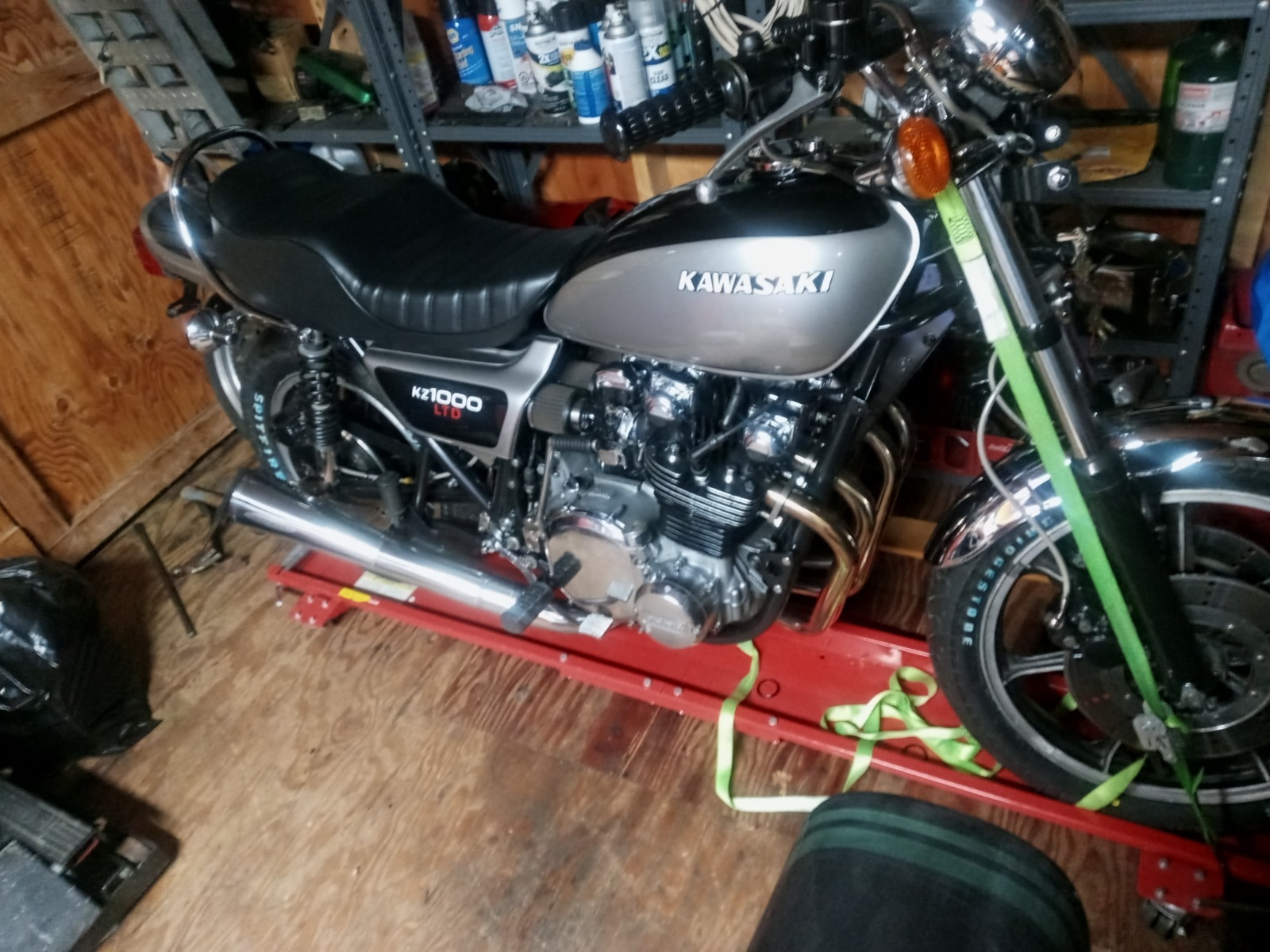 77 ltd1000 80 ltd1000 78kz1000a ,02 red zrx 12r, 94 cb1000 big one ,03 valkyrie (my couch) 65 olds 442