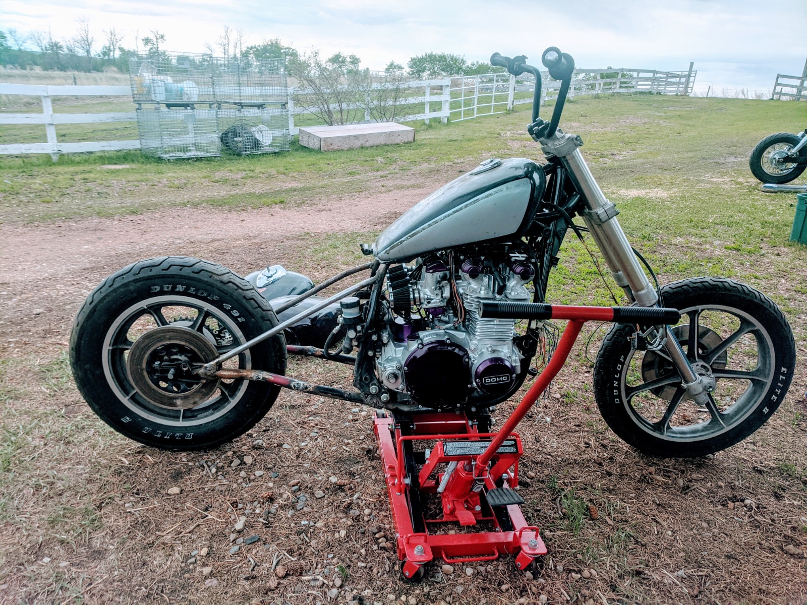 Hijacked 77 fits. This must in some way be a comedic post right? I know others have already taken you out to the shed on this "build", but quite honestly what were you thinking? I worked in law enforcement for over 30 years with emphasis on motor vehicle enforcement and inspection. I can honestly say I have never seen a motorcycle frame as cobbled together as yours. You may have started off with good intentions, but had you have asked for some advise before starting this project you would have been told don't do it! These bikes are finite and no more to be made. If in fact you hacked up a cherry '77 to build what you have that is simply a travesty. I realize you may not have any experience in frame building what-so-ever, but just stand back and look at the big picture here. Do you REALLY think that frame is going to make it across a set of railroad tracks without breaking in at least two pieces and perhaps more? Welding, especially frame welding is an art not learned overnight. Where is the art in your welds? Did you use coat hangers for welding rods? Please tell us this is a belated April Fools day post and that you really didn't sacrifice a nice KZ-1000 for this. If I were still working in my old job and saw this creation going down the road I would have to send for extra citation books.