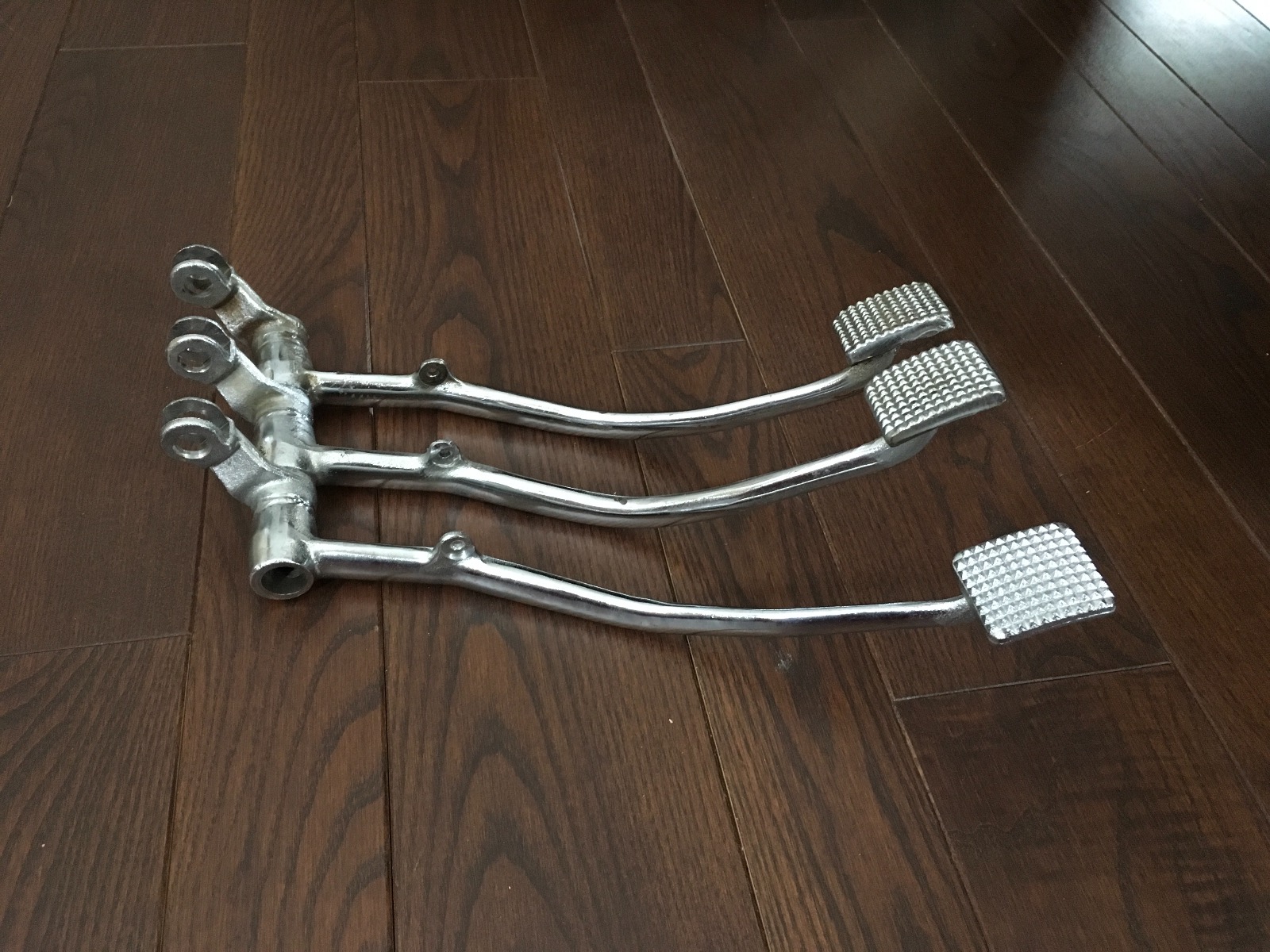 There is rash on both of the OEM. I found some pipe and bar that help line up the critical points and the NOS is looking better. It completely aligns with the ‘74 Z1 pedal up to the foot pad point. The ‘76 OEM really does now look bent.