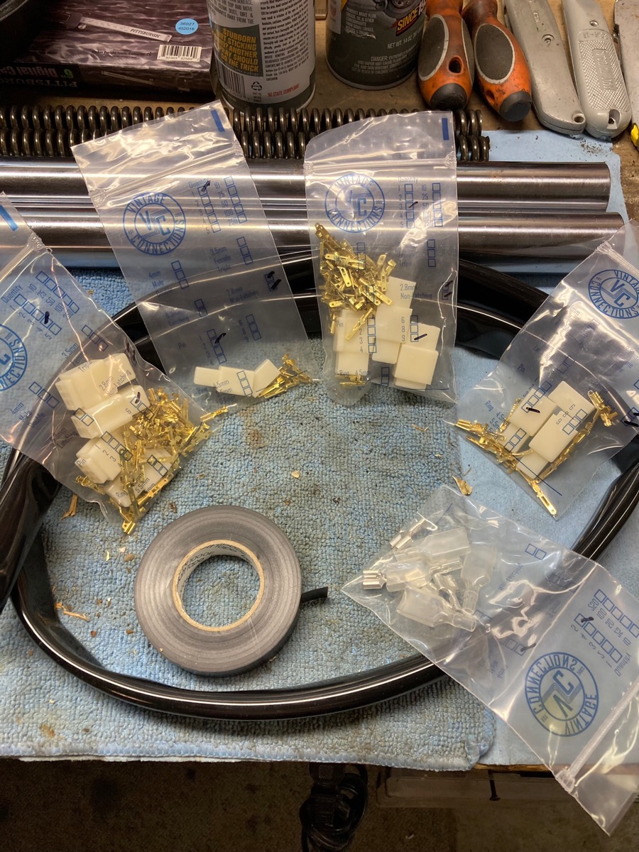 26 Sep 2022 09:06 - 26 Sep 2022 09:06Yes, I held the connector end in the vise, but trying to hold the loom with one hand and wrap with the other was awkward. Thinking if I can hold the loom somehow maybe with a strap around my waist that would free up both hands to wrap. Still working on technique.Looking good, did you hold one end in a vice etc so you could pull the loom out straight while you were wrapping ? also when you are wrapping try to roll the tape on with your thumb with a little tension on the tape (it's a bit awkward but gets good results)A small practice run. Repaired and cleaned a rear harness and wrapped it. Also fixed a headlight plug. The rear harness turned out great. The non adhesive wrap is easy to use. Just need better skills to get it smoother