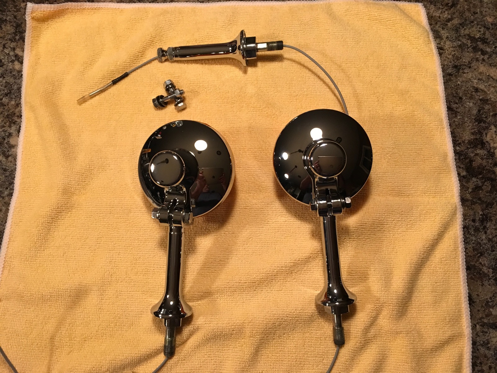 The front turn signal are built. Had a heck of a time repairing the power wire. I’m sure I’d be able to find the 2.5mm female connector but not the skinny long cover. It’s fits inside the turn signal stem. So I finally figure out how to fix them. I couldn’t find NOS stems and the original were really badly pitted. Tripp Plating re-chromed them and they look bad a$$. The turn signal and lenses are NOS. Bolts, washers and nut are original, cleaned with a dremel SS wire wheel and then polished. Waiting on the rear turn signal from Partzilla. Slow but kinda steady.
