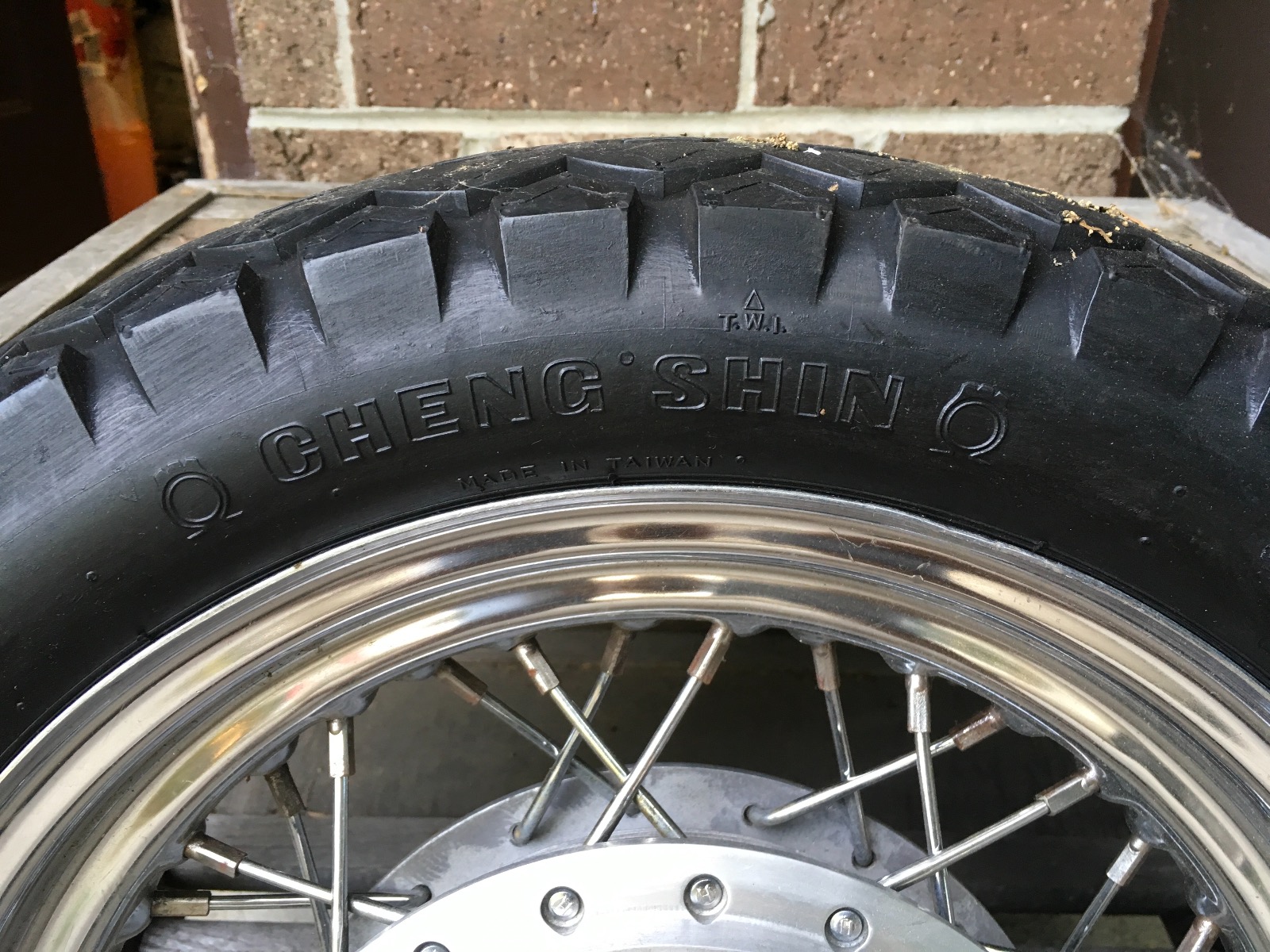 Amazing you mention this... this bike has a K81 tt100 on the front and a Chin Shin on the rear... must have been to “must have” combination at one point... this bike also had a 16” rim laced to the drum brake hub... notice how the spokes are laced...