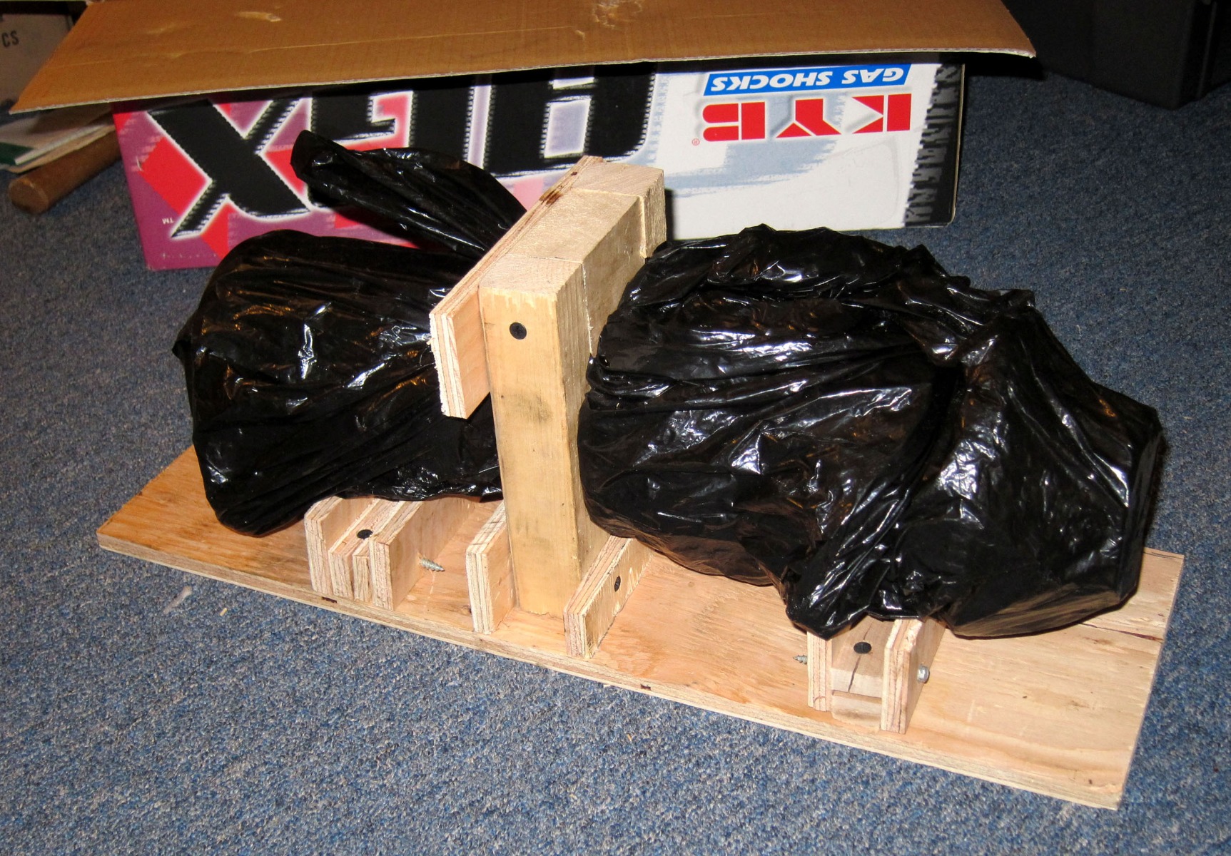 I had a very sturdy double walled box from some car shocks. I made a plywood base that just fit inside the box, and then built up pads to support the crank at the bearings, and screwed blocks over the top in the center so it couldn't roll around. Then I packed the box with foam. It's probably one of the best packing jobs I've done. It was so heavy, I was really worried that if I didn't bolt it down in some way it was just going to explode out of the side of the box like the Kool-Aid man.