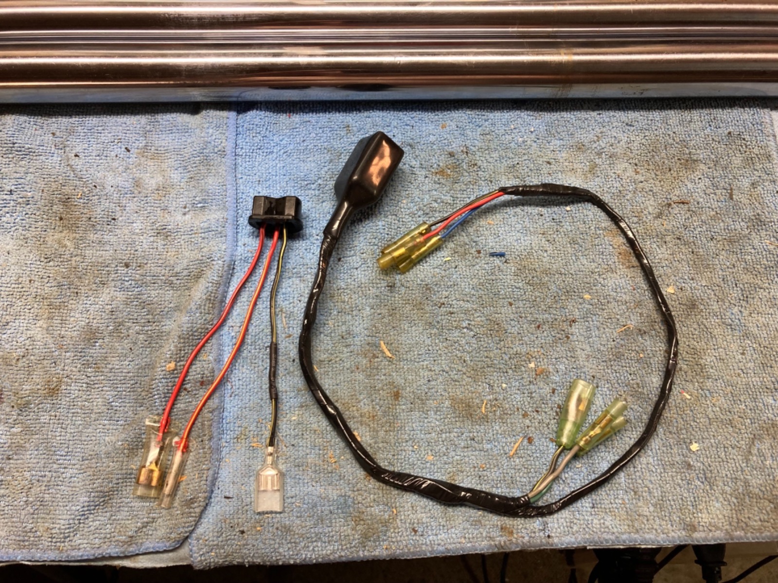 A small practice run. Repaired and cleaned a rear harness and wrapped it. Also fixed a headlight plug. The rear harness turned out great. The non adhesive wrap is easy to use. Just need better skills to get it smoother