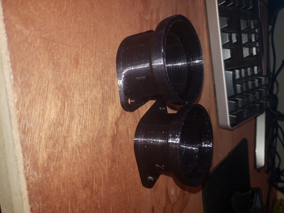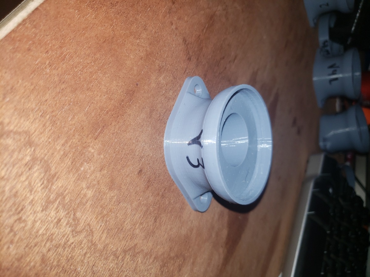 For V3, I designed the adapter with the eccentricity, added a retaining lip for the TB, bumped ID to 53.25mm, and added fillets connecting the vertical section to the bottom flange. In this version I also changed my model to have the exact same footprint as the previous carb boots. While designing V3, I totally forgot to make the opening for the TB bigger, which is why it looks different than the other versions. Oops, It'll get fixed in the next iteration.