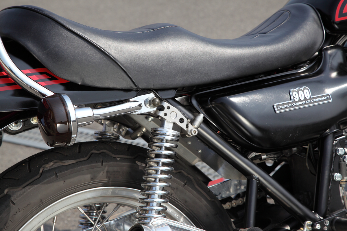 The GSX-R swingarm has the same spacing from the pivot bolt to the lower shock mounts as the stock swingarm. The axle is 30mm further down and 55mm further back with respect to the bottom shock mount. The new shocks are 20mm longer.