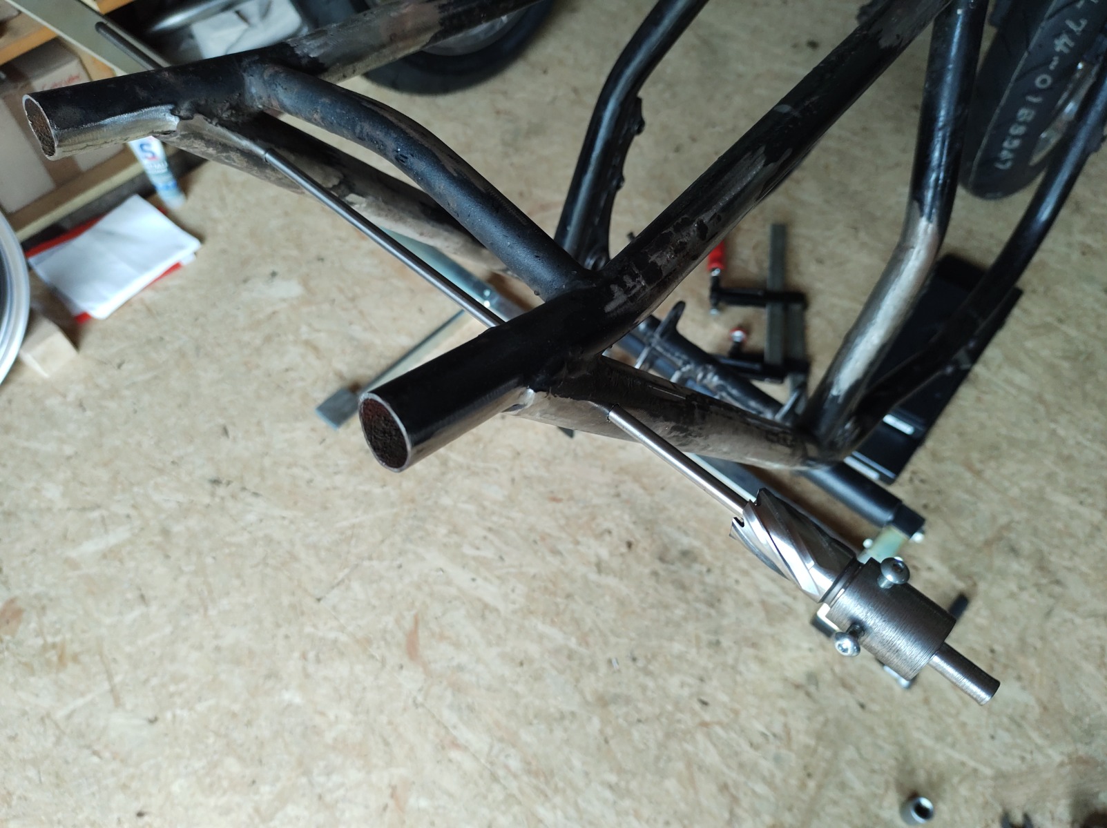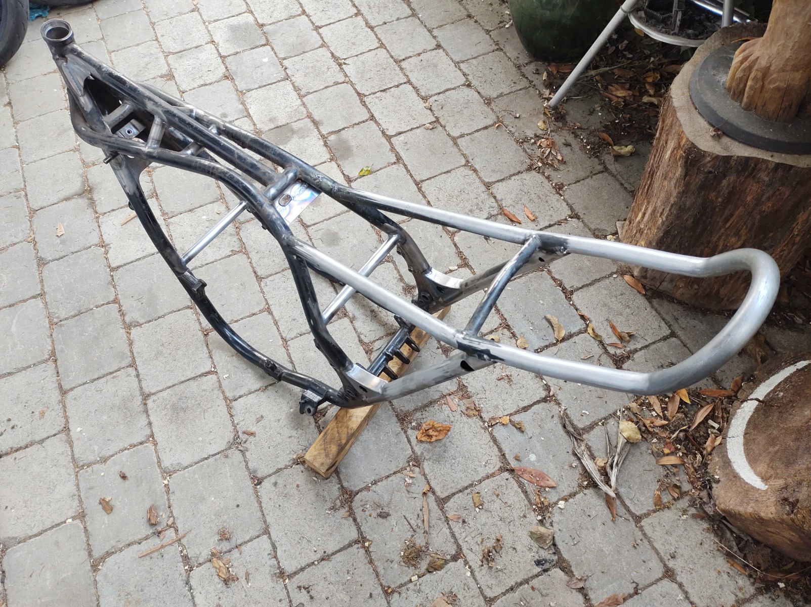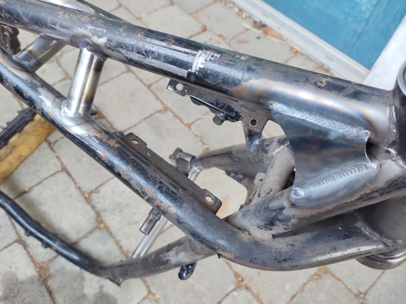 I'm not allowed to weld much on the frame as you need to be certified if you want to get through the MOT when it's done. I can weld the seat mounts and exhaust brackets etc. just not anything structural.