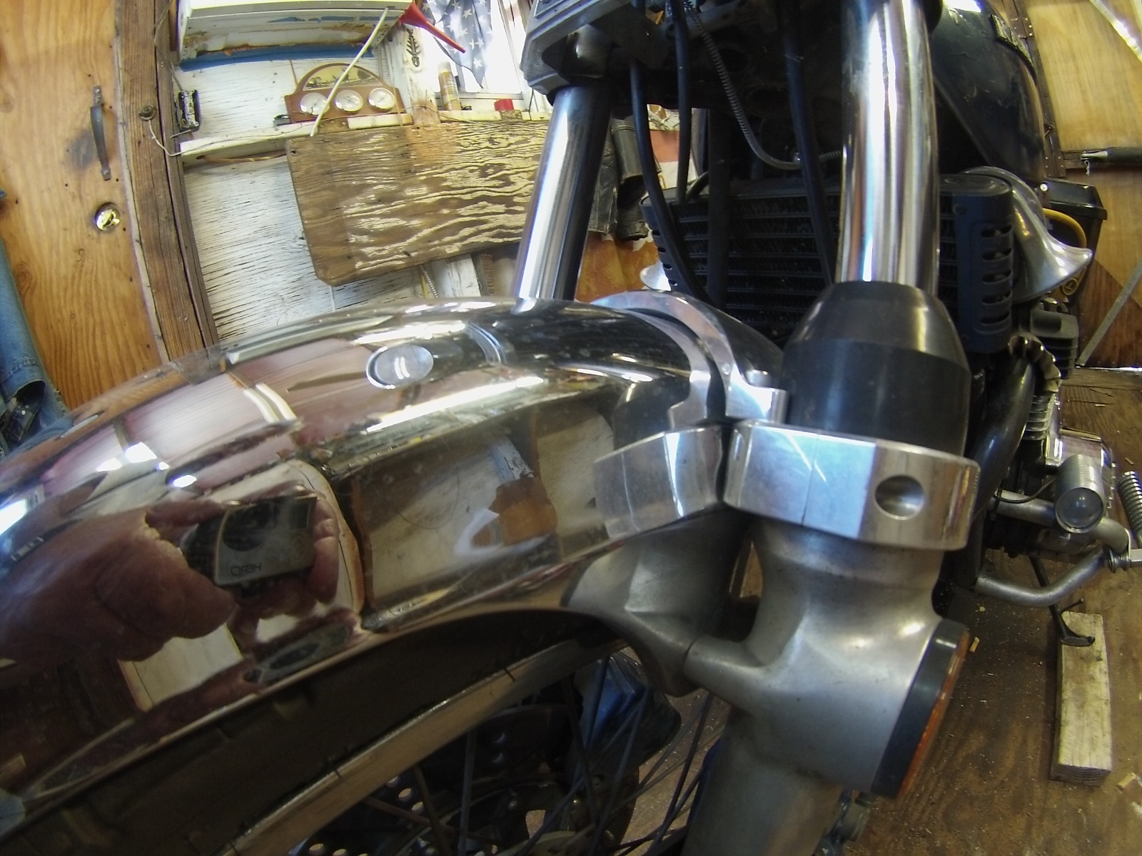 Yeah, I've been planning on making one/getting one made so it shouldn't be a problem - there's heaps of clearance. The guys that do chrome work for me make custom fenders and I should be able to get them to shape something that I've already cut to size. The rear fender is going to be a lot more work...
