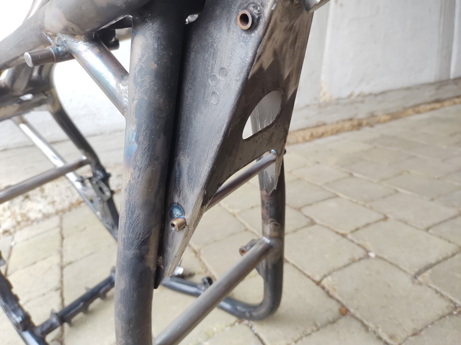 - Put a bit of steel rod through the steering head gusset for the lower oil cooler mounts.