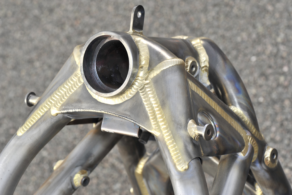 My god that braze welding is beautiful, i braze weld on a regular but nothing as ornate or complex. "to the best of my knowledge" Kawasaki did not heat treat the frame but welding is a form of heat treat, as long as the weld is allowed to air cool it will become strong, as long as the weld is good ts the steel around the weld that will be the week point.