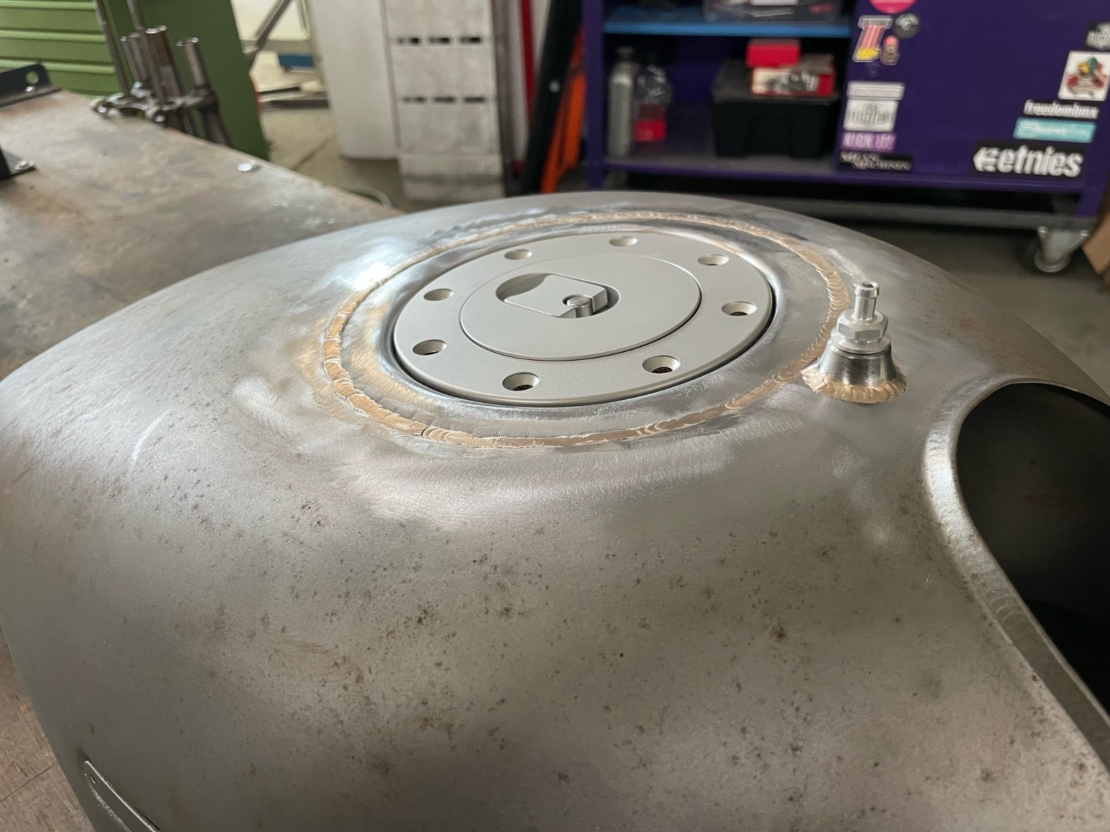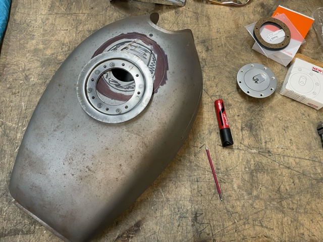 That's some nice welding mate... I'm putting a breather in my tank as well, i'm going to have a small "box" {square instead of round like you've done}, to hold the breather fitting, made from the metal removed to fit the twin filler i'm using , I was thinking of just drilling a couple of small holes in the tank and welding the small "box" to hold the breather fitting, instead of cutting a hole that same size as the "Box" or raised mount. I was thinking about fuel surge under brakes and stopping fuel being pushed into the breather hose. Does that make sense ?
