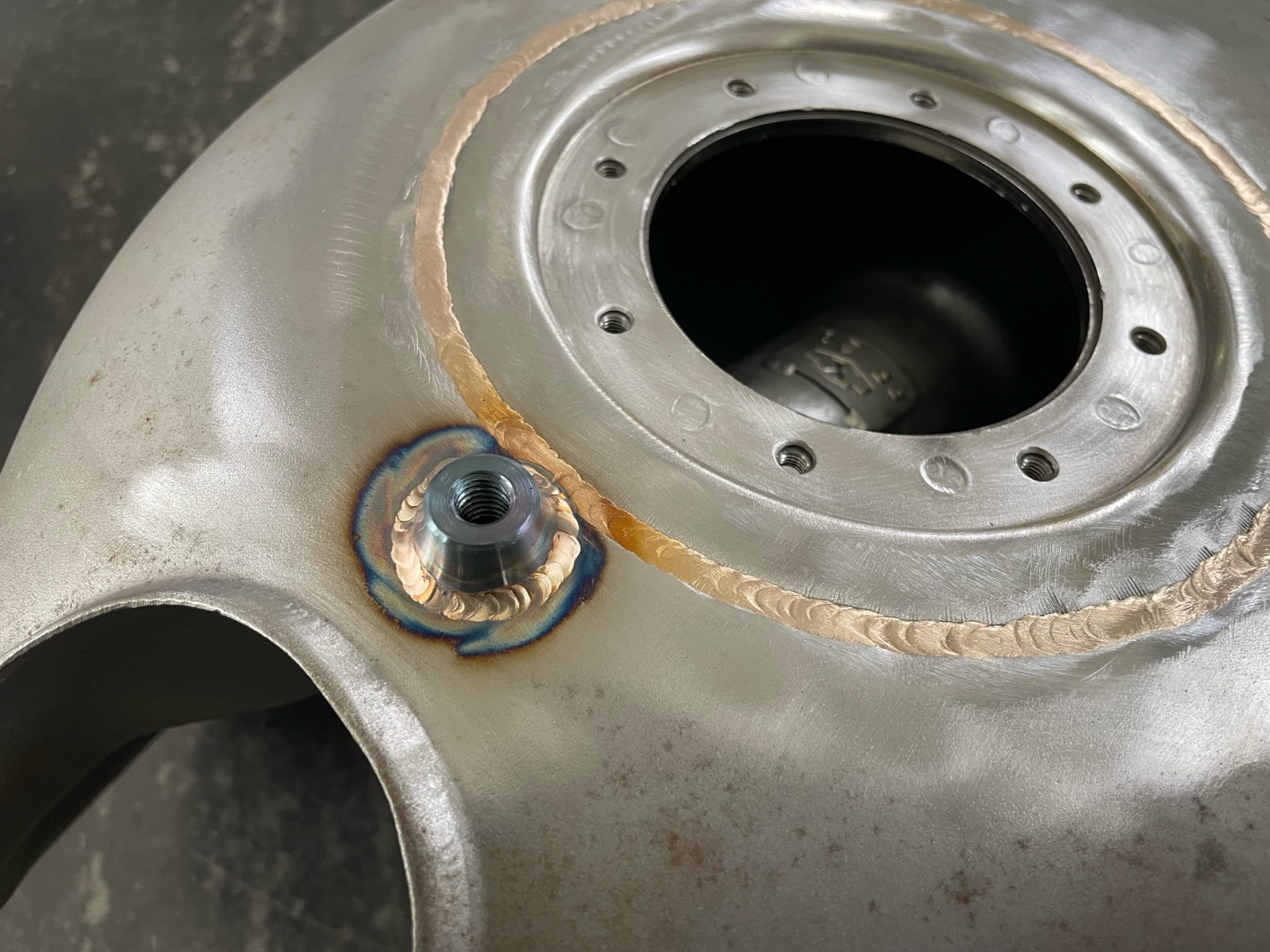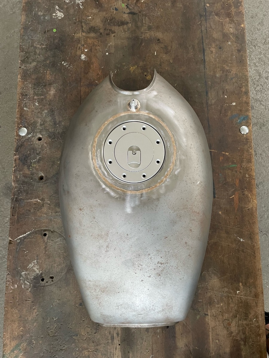 Yeah, I'm pretty happy with his work. The tank is done now. The bung for the valve is a bit higher than I would have liked, but it should look fine when painted and there is very little room under that part of the tank. I didn't want to mount it off to the side as I'll be running a vent hose to the steering stem and that would have looked a bit wierd.