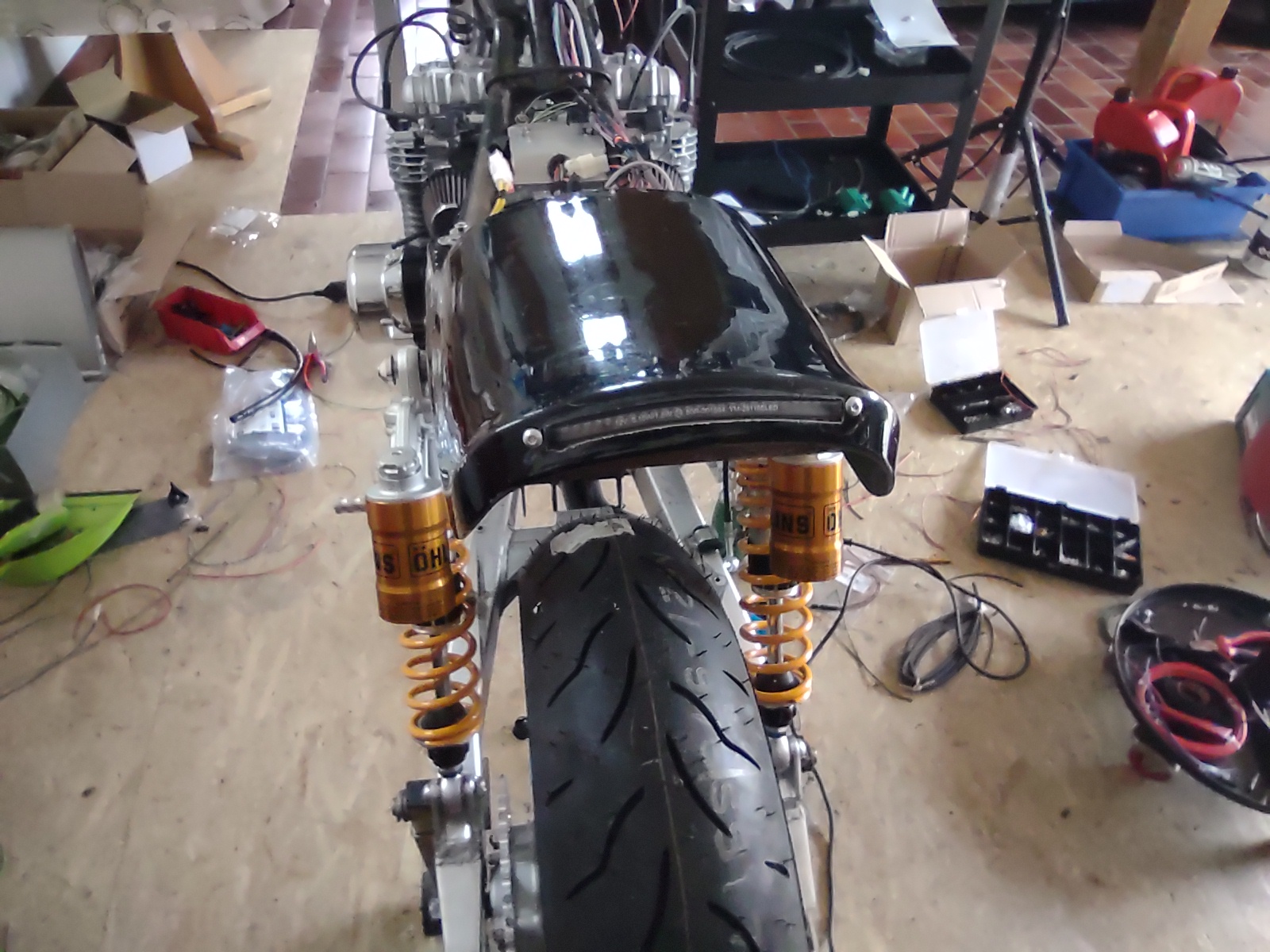 I have everything except the rear indicators done. They will hopefully arrive this week. I wanted to use combination indicators (tail light, brake light and indicator) but I am only allowed a single brake light. Dual brake lights are only allowed on the newer bikes that have to meet the EC standards. The old German standard is a bit more relaxed as far as indicators go, but it restricts bikes to a single brake light. TL-DR: I sent the combination indicators back and got an LED strip for the tail.