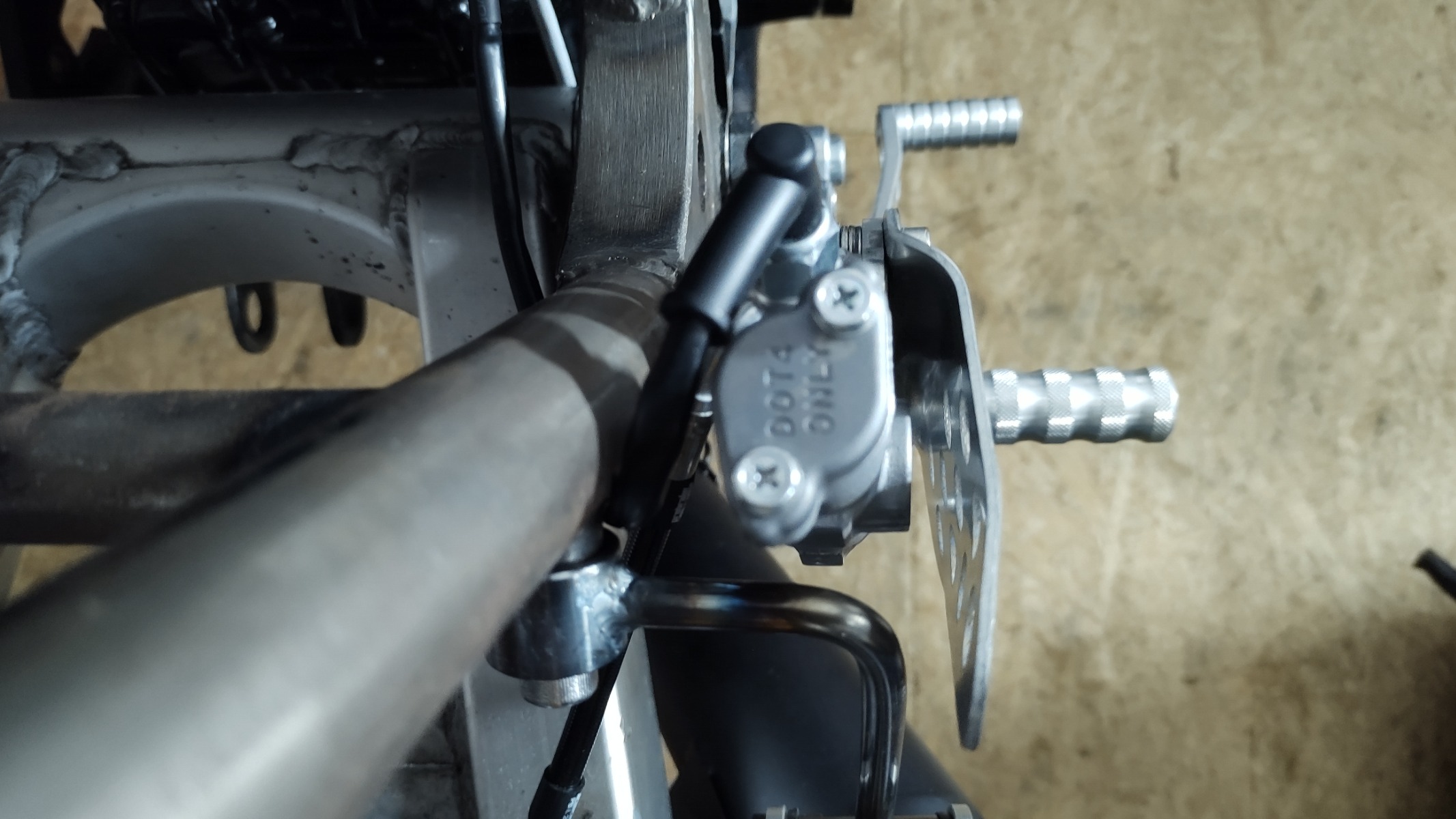 Got the exhaust hanger and the low-beam switch done this weekend. Copied the exhaust hanger from Doctorot's build (thanks for the photos!). It's a bit longer than planned as the new exhaust is a lot lower.