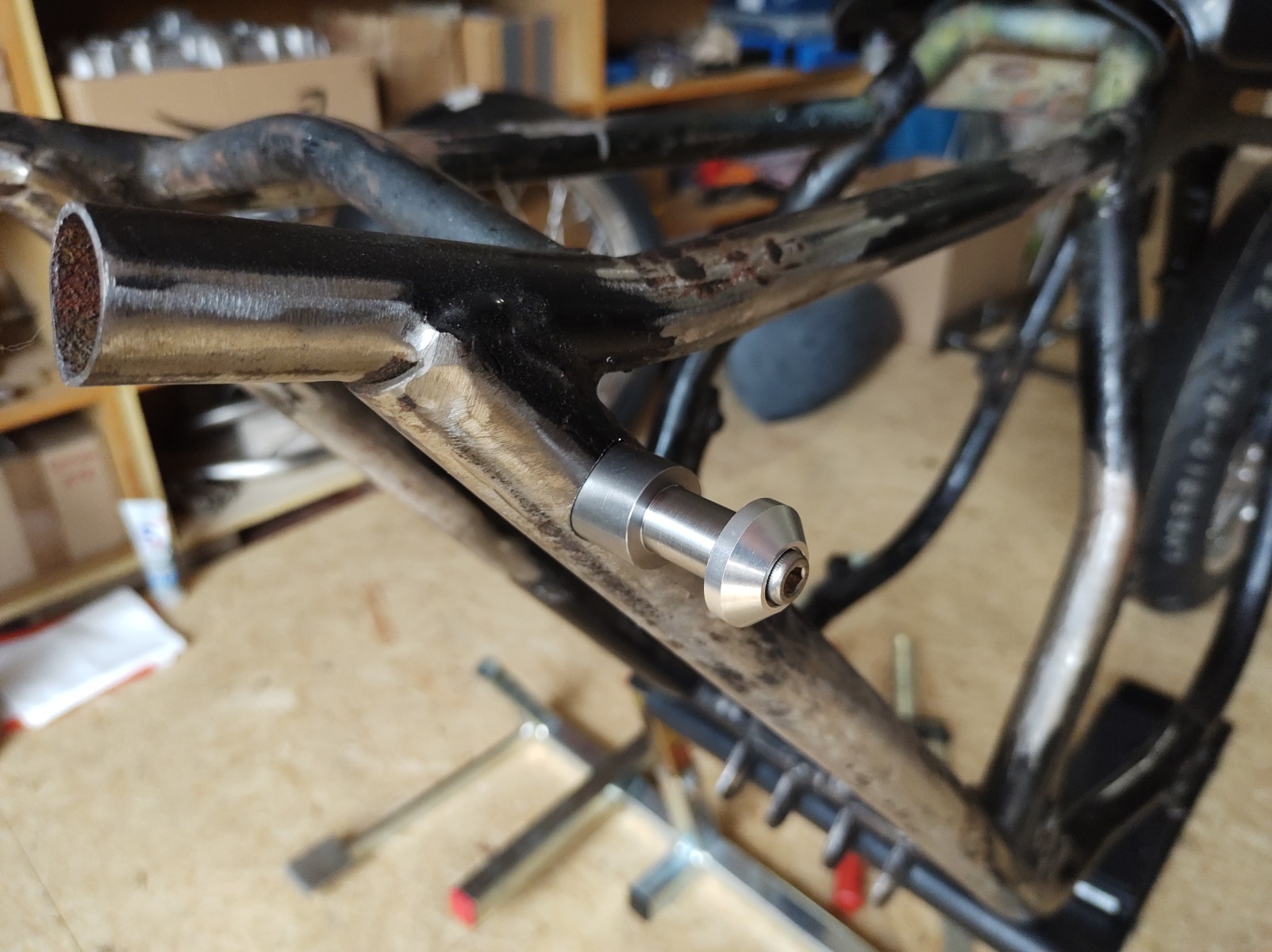 17 Aug 2021 15:31Yeah, I have a bracing kit lying on the workbench ready for after the holiday. Need to make up a couple of extra pieces to keep the MOT guys happy - a tube where the crossbar behind the battery case was and a couple of tubes to brace the new shock mounts. I'm allowed to weld non-critical stuff like the oil cooler, tail and seat mounts, but I'm only going to tack the bracing etc.on so it can get welded by someone with the right paperwork - GermanyI might have missed it, but are you going to brace up the frame while you're in there?