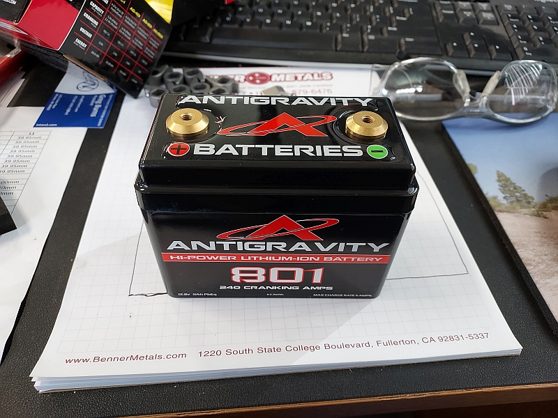 I just picked up this Antigravity AG-801 battery. About the size of a carburetor and only weighs 1.5 lbs. The lithium ion batteries require a special charger and cannot be jumped using a conventional lead acid battery, though. The charger was around $35, so no big deal.