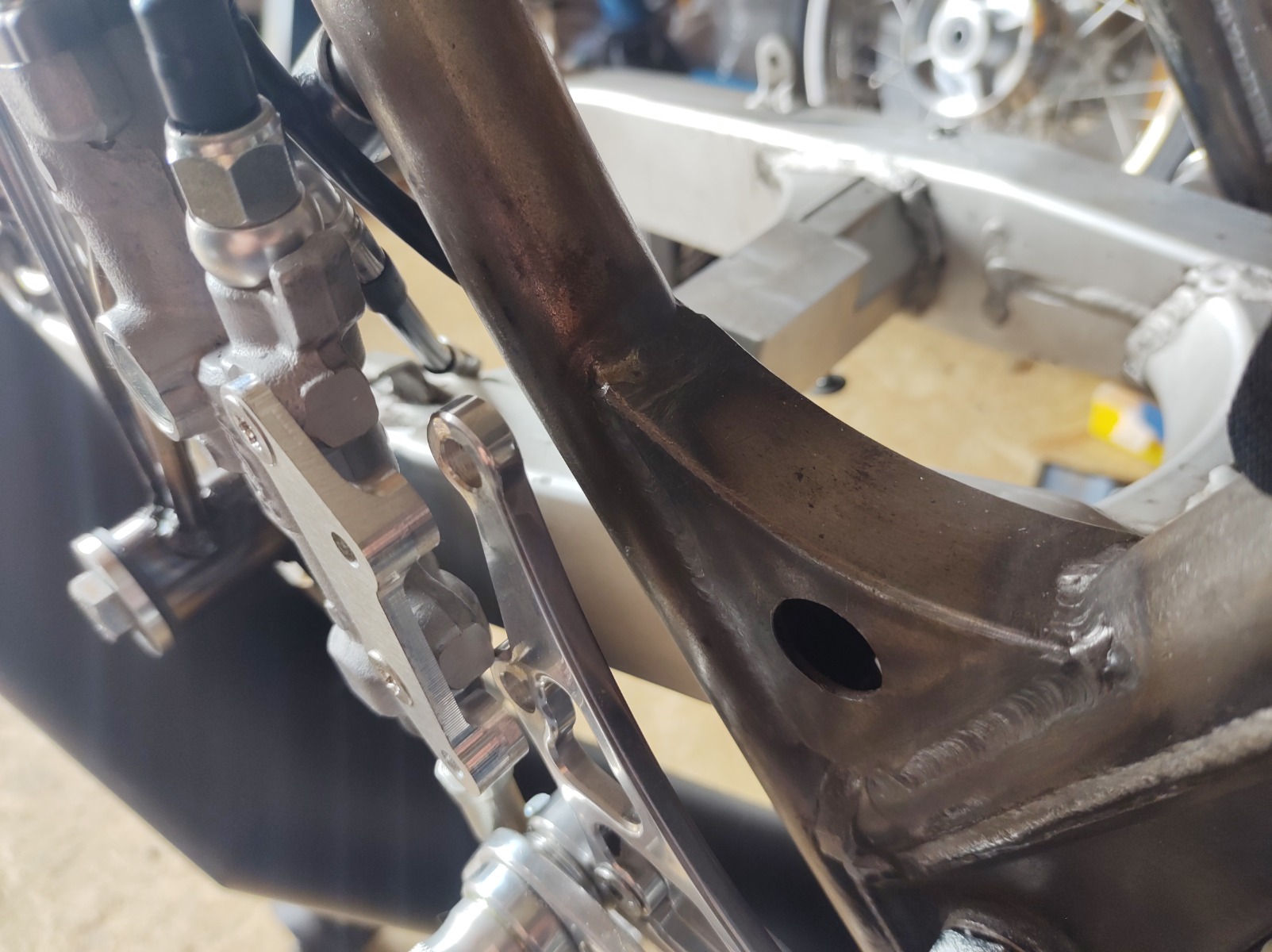I shortened the torque bar for the rear brake and mounted the speedo sensor to the caliper: