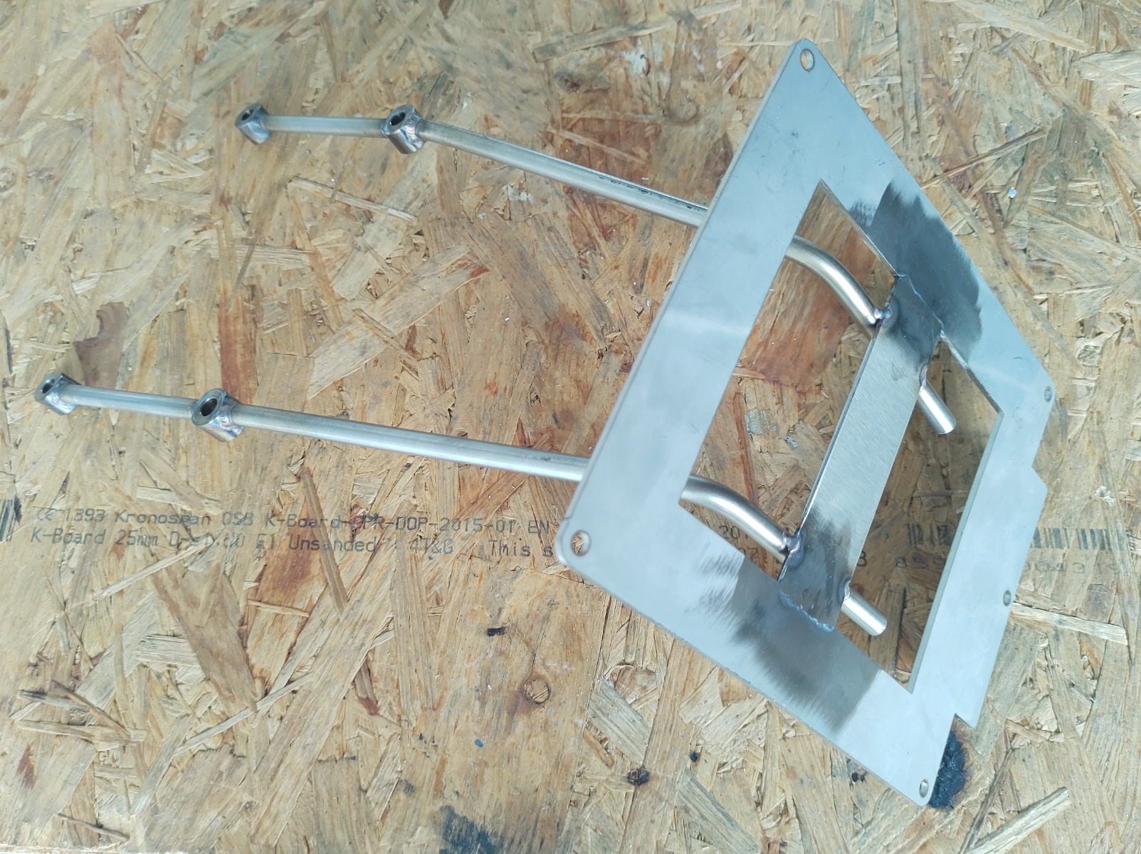 - Got the new license plate bracket done. The backing plate is only tacked on at the moment. Once everything is painted and the rear wheel is on I'll make sure it's straight and double-check the angle (can be max. 30° from vertical in Germany). Then I'll weld it on properly. It's stainless so it's not getting painted.