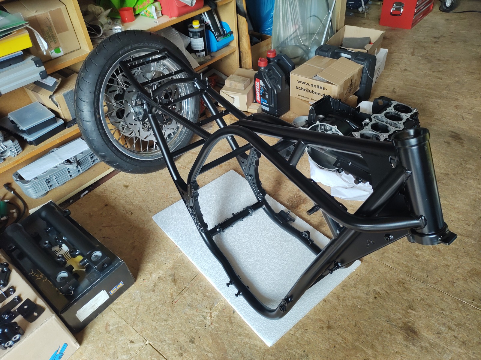 - Got the rest of the little things ticked off the list as well: side stand stop on the frame, reduced the steering angle slightly, mounting bracket for the RFID sensor, ... just need to bead blast a couple more parts and all that's left is a lot of painting.