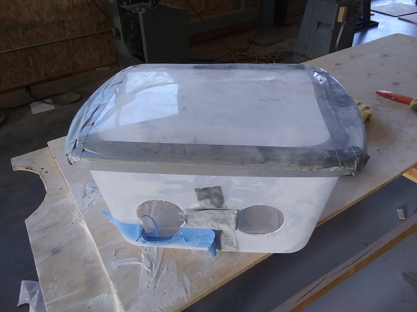 From a Rubbermaid tote with a window cut in the lid and a piece of clear Plexiglas taped on it. That not only mitigated the mess (not eliminated—I think in the future I might only use this outdoors), it also allowed me to reclaim most of the soda.