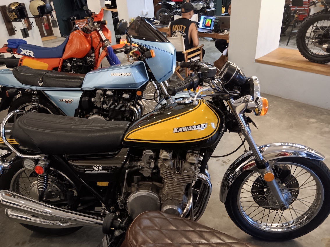 Sadly, my KZ has still not made the trip to Singapore. This country has some idiosyncratic regulations. For one thing, they don't want anything over 10 years old being imported unless you're willing to pay a tremendous fee. Also, to put any machine on the road you need to pay a tremendous fee (about $8000 US). Also, they have a tiered motorcycle license system that limits you to under 200cc's for a year, then under 400 cc's, then whatever. You can get around this by getting confirmation from the home DMV that you did your testing on a bigger bike, but the Michigan DMV doesn't have any such record from the 1980's, when I took that test. Also, you can only operate on a "classic" (more than 10 years old) plate for 45 days a year. There are still other issues, so I'll just have to look forward to returning to my bike in the summers.Speaking of Singaporean red tape, while I was waiting for my work pass to come through, I stumbled upon this bike shop: