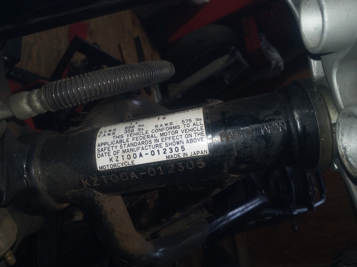 Ok,even though my 77 ltd1000 isn't finished,I decided to start another project.A 77a that I couldn't pass on.She was fairly well stripped when I got it but I have a 78 a parts bike.I noticed on the neck above the vin # it is stamped made in japan but my 78 is not.