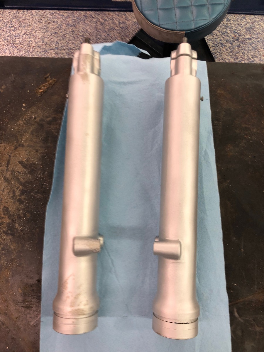 Some updates. Picked up parts from vapor blast. I asked him where he felt like coating was applied. He said front hub?? He didn't feel like forks had clear on them (but I can tell there was). So now I still have dilemma on what to do with hubs. On forks, I used 3m pad to bring back factory-like shine and going to clear coat them.