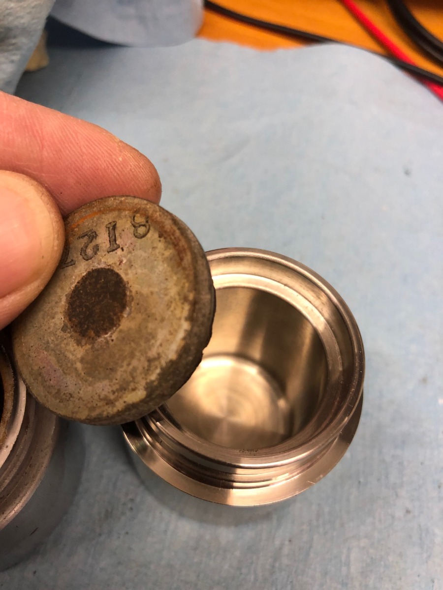 Received caliper kits. I guess there is good news. Pistons completely identical, they just miss inserts. I carefully cut a lip on a lather to remove those pads.