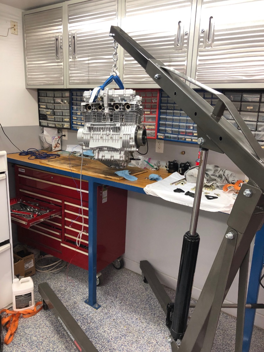 Bought engine hoist, unfortunately I didn't find any better way to get engine out of a bench. I am planning to lay it on a side and put frame over it. Sounds like it's a best way to approach.