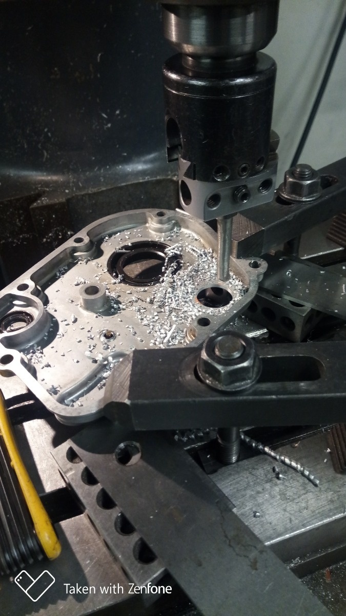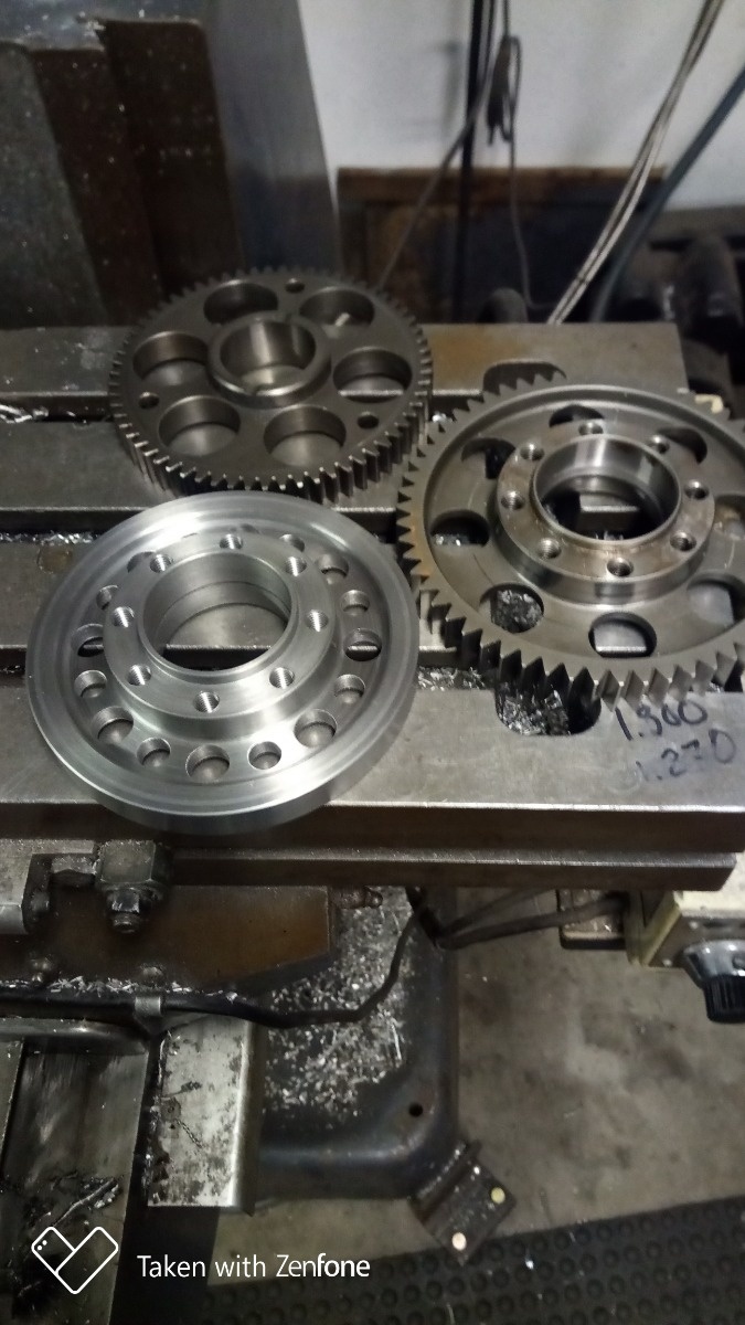 The main gear that supports the Ducati basket and main seal was made from 4140 annealled ,it's essentially a Ducati gear with Kawasaki gear pitch cut on to it ,then carburized to 58 rockwell, then machine the seal and bearing after returned from heat treat
