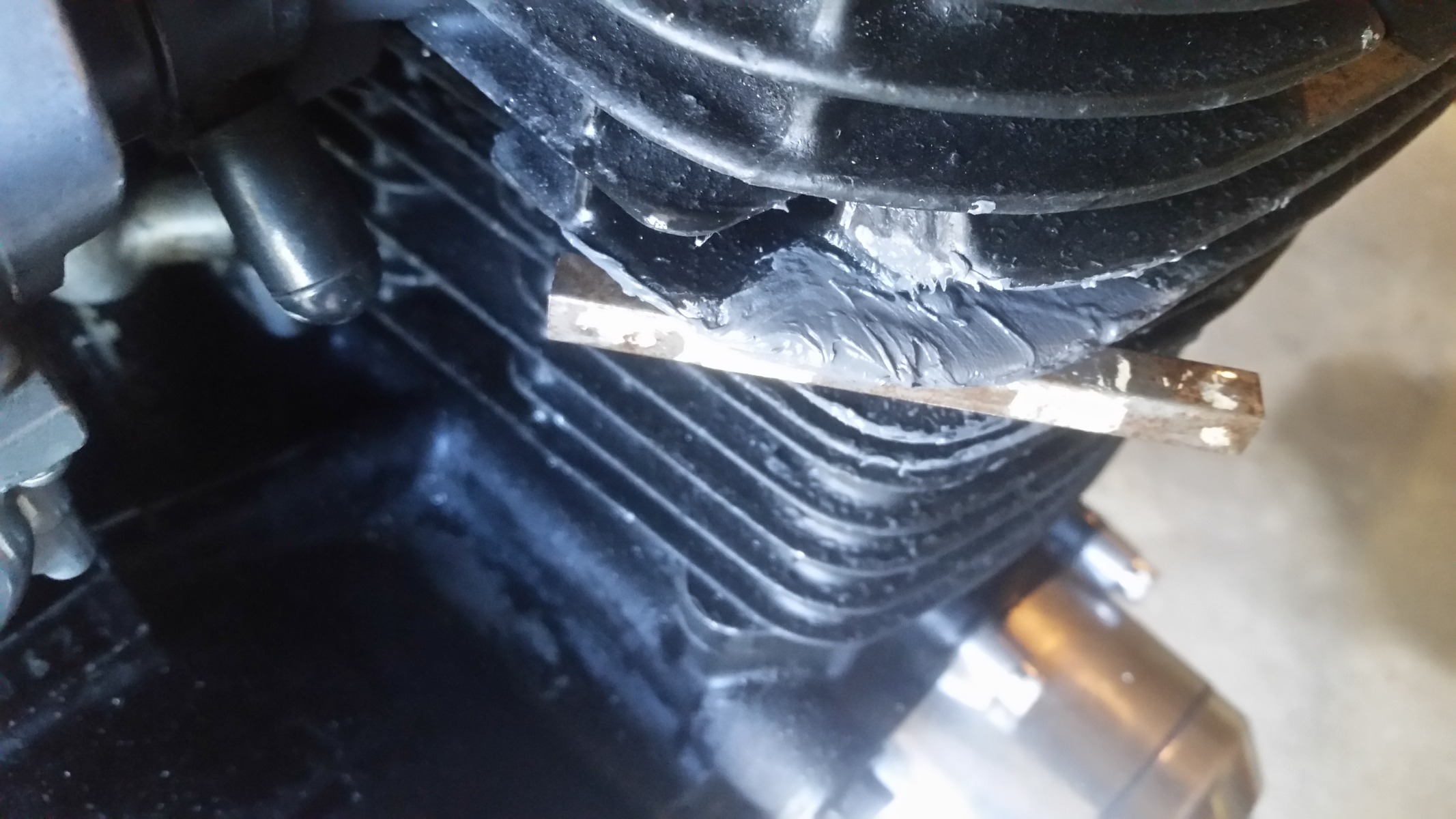 Update on the fin job! I've made a better shaped and thinner fin since the first one pictured, after a lot of filing I was pleased with its shape so I micro drilled 3 holes in it and glued in 3 sewing needles! I then dipped the needles in white paint and marked exactly where the fin will go on the head after drilling 3 holes in the head I glued the fin in place and mixed up some jb weld, lots of people like Swest and Bohica bob have convinced me that Jb weld is the best thing so I applied a good amount top and bottom and I left a spacer in between the fins then I couldn't help but make another fin there and then for the broken piece on the other side, I drilled and pinned that too ,all the same procedure, the shape and fitment of the second fin isn't nearly as good as the first one cos I rushed it a bit so I smeared on a lot more Jb weld and I'll have a lot of sanding to do! I'll get back to the bike on Saturday and start the sanding!! Wish me luck! :laugh: