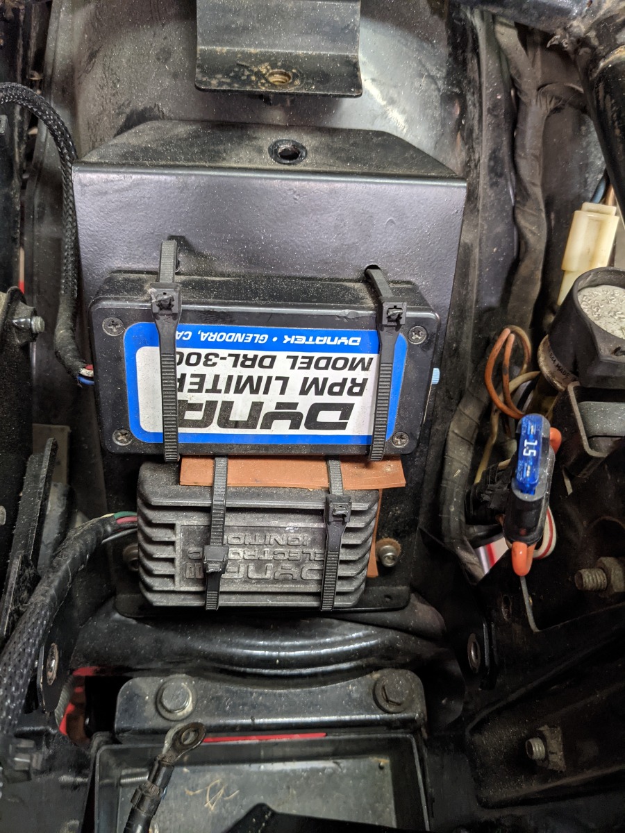 My new solution is much lower effort. I zip tied the igniter to the silencer, and plopped the rev. limiter in the tool tray. Simple. Maybe effective? We’ll see.