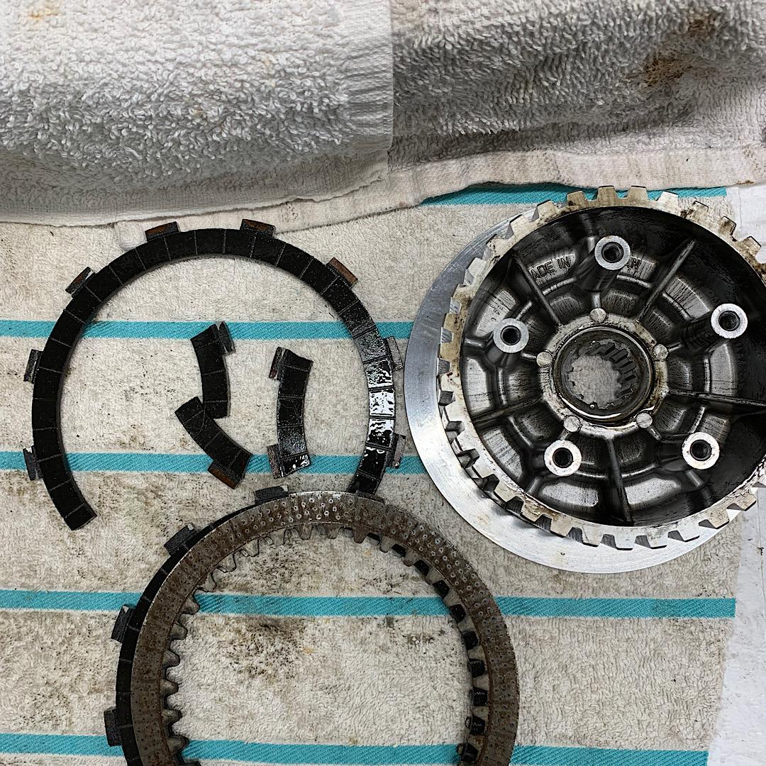 When I bought the bike I didn’t think I should actually ride it and I’m glad I didn’t. I’m not sure what would happen if I ran it with a disintegrated clutch plate.