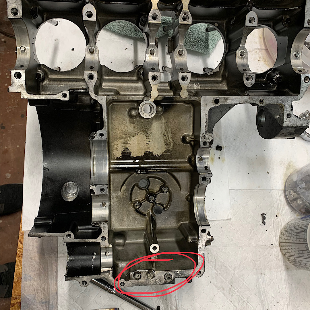 The two circled bolts attach the kick start pawl. No reason the remove them we know of unless replacing the pawl. We've never heard of a pawl failing.