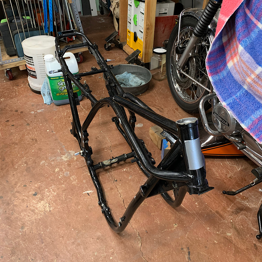 Your frame currently is to high gloss, that how HRM noticed it had been repainted. Not sure of match to the early Z1 but VHT Chassis and Roll bar paint matches perfectly to my Kz900 and ‘78 LTD 1000. Looks like you need a transmission cover, it appears to be broken. Kawasaki 14025-1106