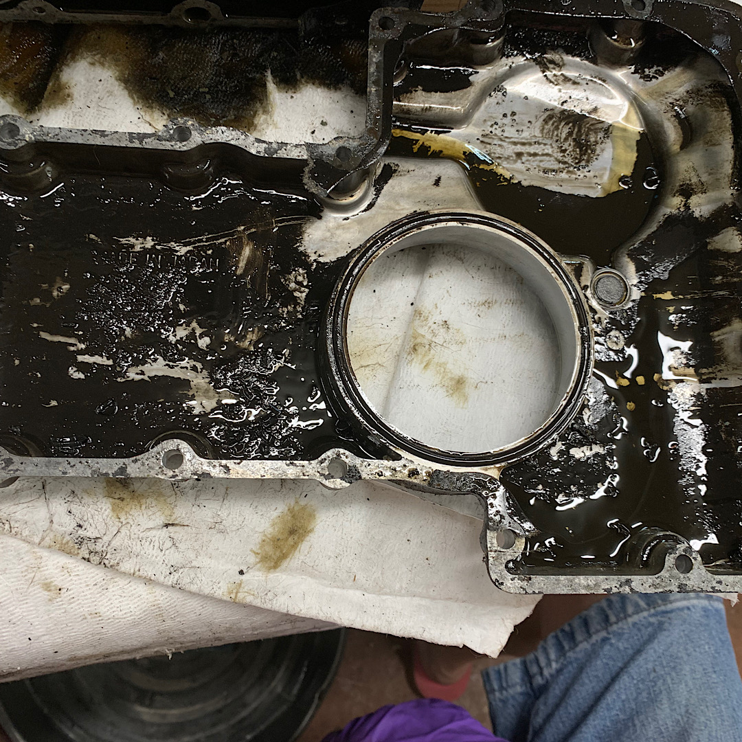 The oil pan looks a bit yucky but the plug magnet looks clean, which is good news in terms of engine wear! The pump screen also looks clean.