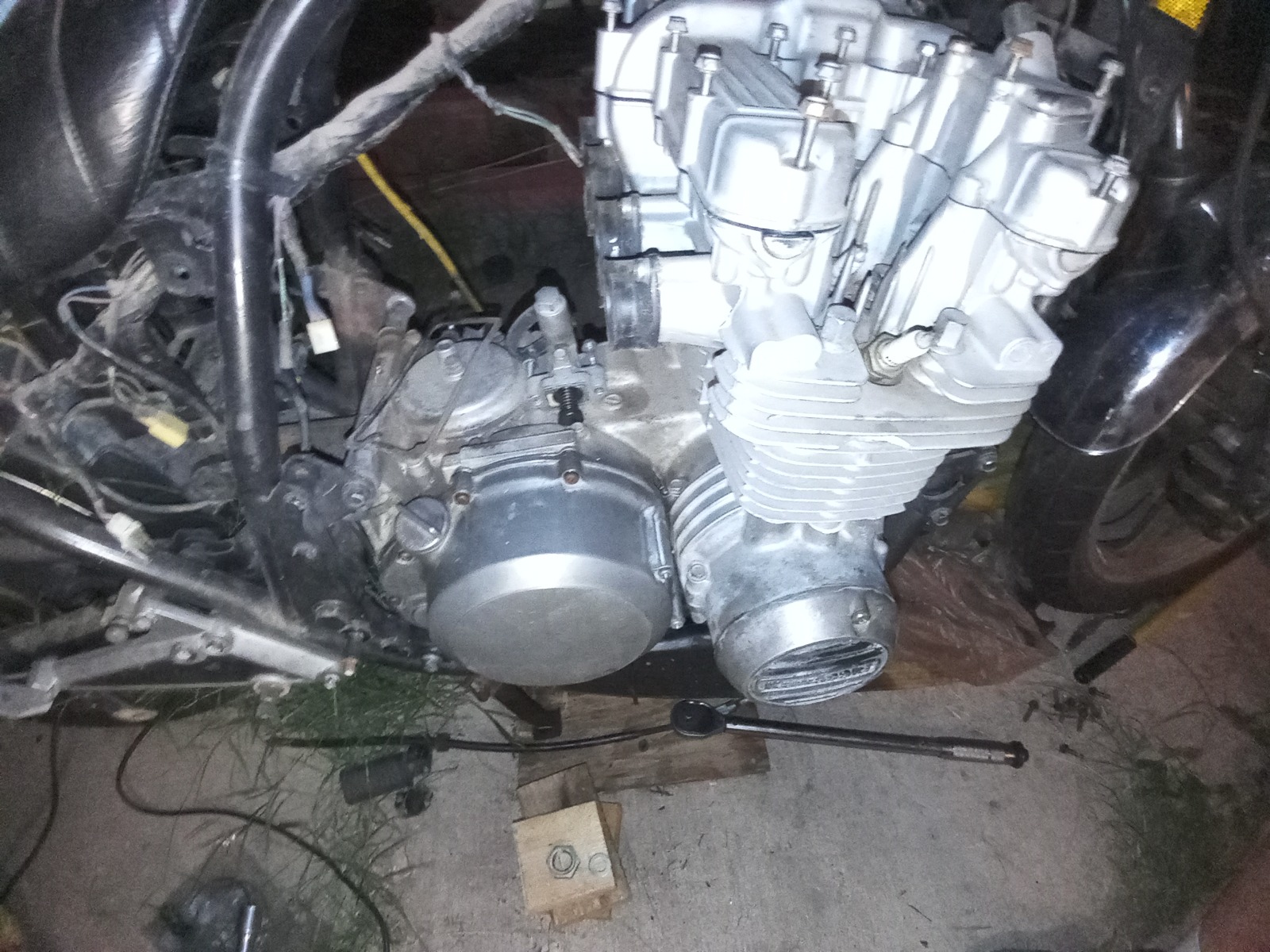 Well I got the ZR7 starter clutch out of the R1 engine last night. Got the stock SC out of the 750H and the ZR7 SC mounted but not fully installed in the 750H. I sort of measured the 2 before installing and they are the same length, gear to the other end. I would even say the same gear is used. It's easier to install the SC with the gear off and installed later after it's in the drive chain and just twist the gear in the main body. Just make sure the little spacer/washer is in the main body first. As of taking the nut off the secondary shaft, I just used a socket on a manual impact. A couple taps with a hammer and it was loose. No drive chain, no wrench on the crankshaft to hold it in place. I think I did the same thing when I put it in the R1 engine. I'm using a Haynes manual for guidance. I used a cheater bar (an old extra long fork tube from an A75 BSA) on the clutch hub nut. It was tight. I'll finish this tomorrow with new gaskets and o rings. Next is wiring. Bypassing or just removing unneeded electronic moduals. Mounting a digital speedo/tach instrument. Buy a battery and insurance and go riding! It's getting warm around here! I'll try to remember to take some pics.