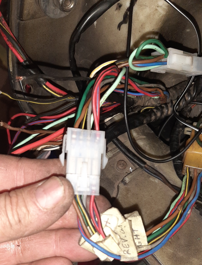 This modification to the wiring was effected INSIDE the head-light bucket, using the new connectors.