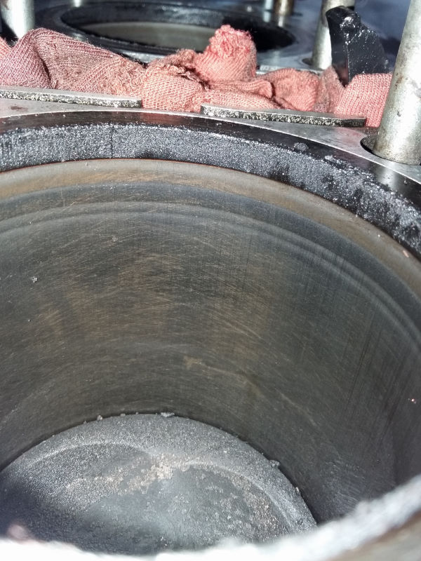 Cylinder 1 bore showed definate signs of moisture / condensation having been in there, maybe not for long, but marks left by the oil rings were clearly evident.