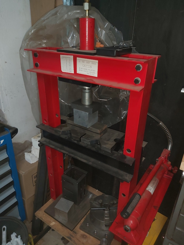I placed my 3D printed tool between two 25mm thick steel plates and pressed it on a 10 ton hydraulic press.