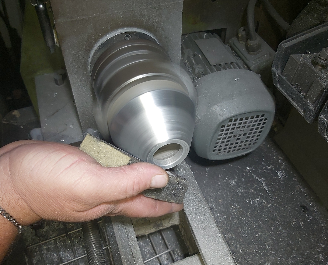 Then, on the lathe, I cleaned up the welding and polished it.