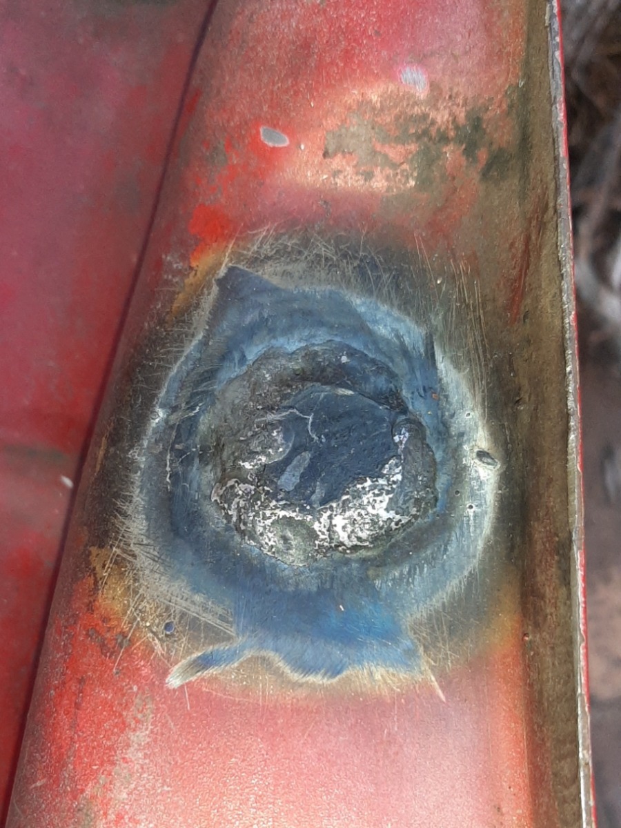 Then, having previously measured and marked the new position for the pet-cock, I set about preparing the surfaces for welding;