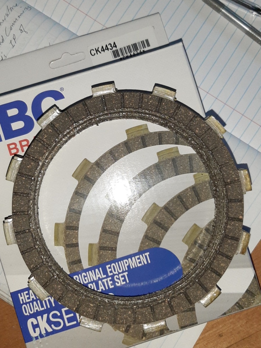 I ordered a set of "after market" clutch plates, delivery of which I took yesterday.