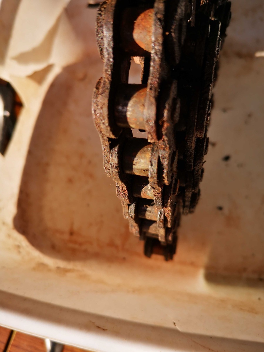 The chain looks good enough, slightly rusty but not crusty / stiff
