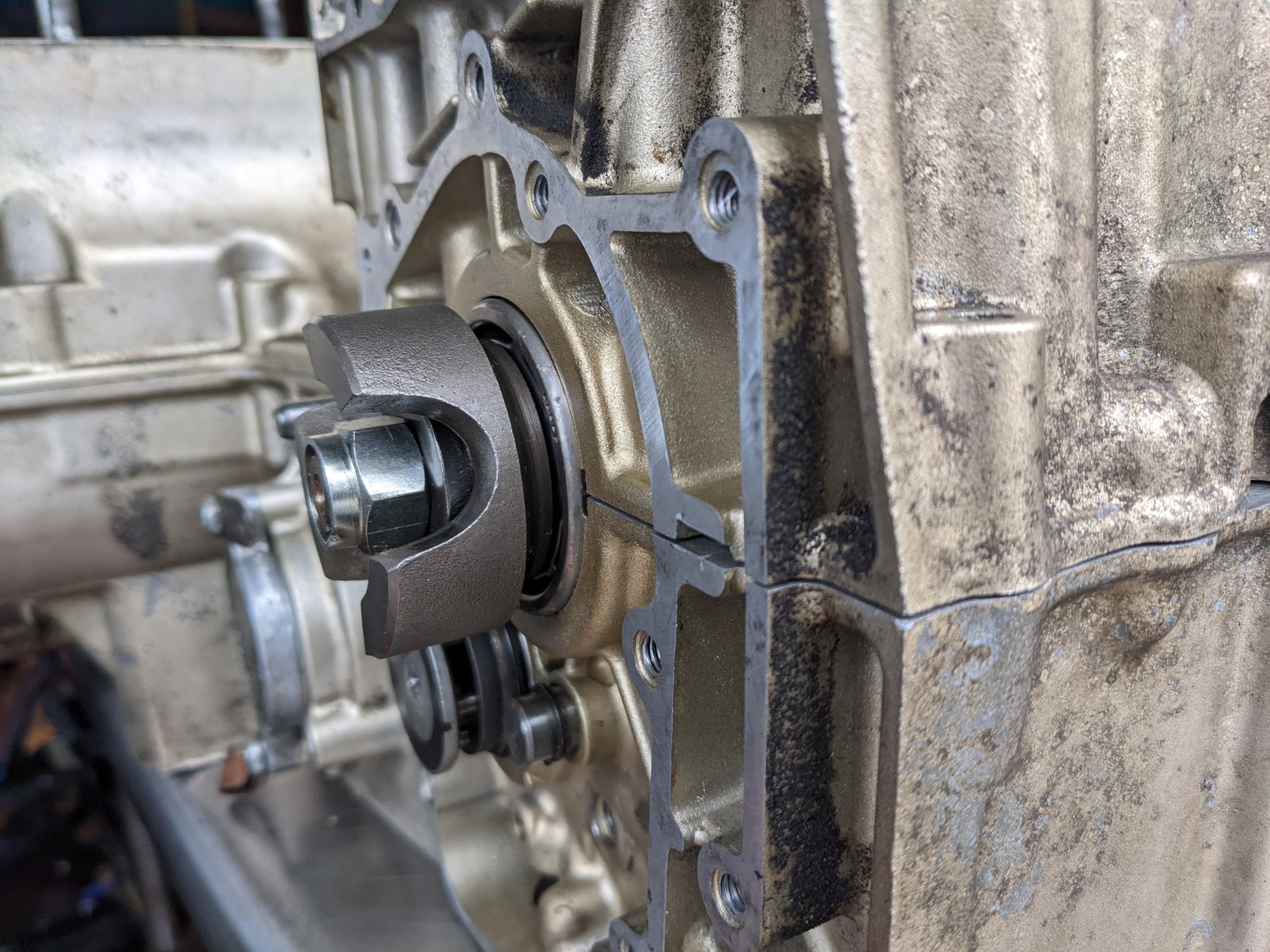 That being said, I took a lot longer than I should have trying to get the halves together! It seems it's always a process I struggle with. In this event the issue was that I tightened down the shift drum too early and the transmission was about 2mm off.