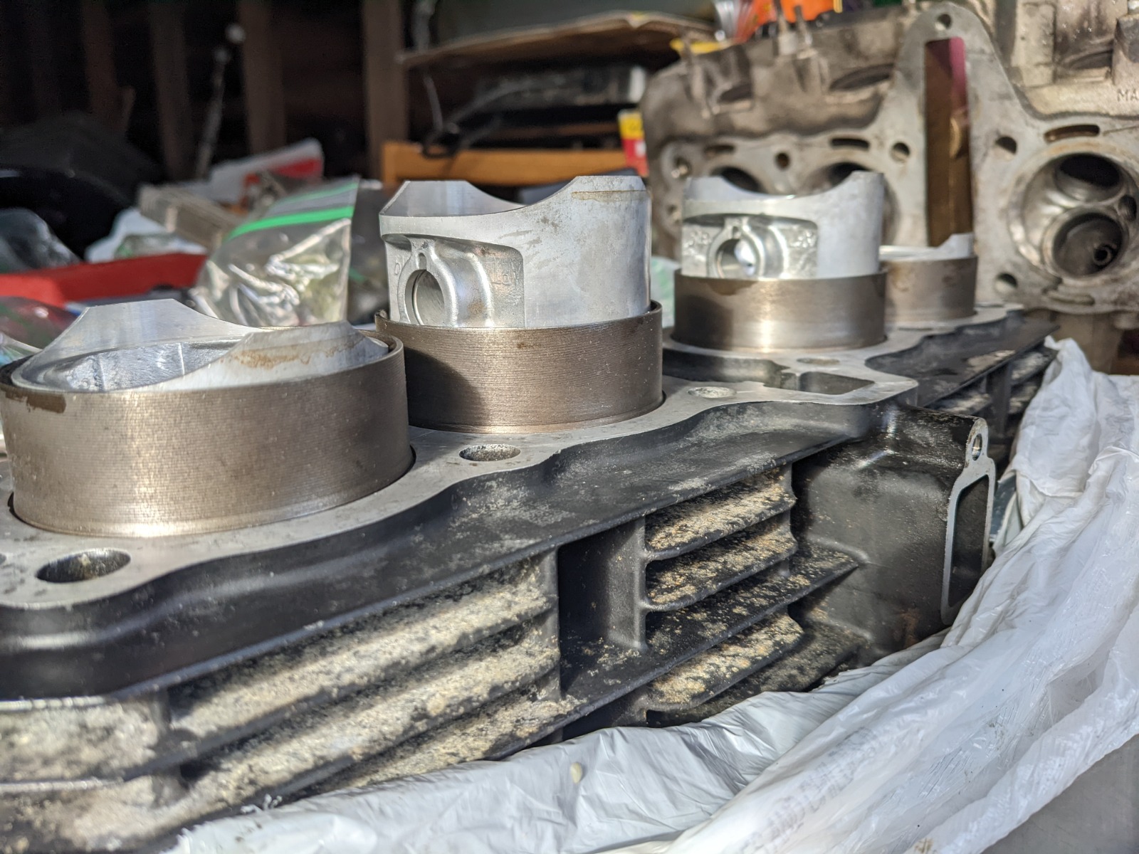 Cylinders honed, pistons soaking in carb dip. Shouldn't be too long now.