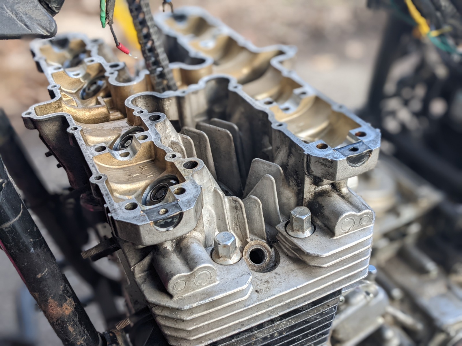 Also, it's probably a bit early to tell, but the Permatex anaerobic sealant I used on the crankcase seems to have worked, with the added benefit of making my engine look like a squished jelly donut.